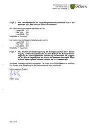Der Staatsminister Sächsisches Staatsministerium für Wirtschaft, Arbeit und Verkehr Durchwahl Postfach 10 03 29 | 01073 Dresden Telefon: 0351 564-80001 Telefax: 0351 564-80080 Präsidenten des Sächsischen Landtages Herrn Dr. Matthias Rößler Aktenzeichen (bitte bei Antwort angeben) Bernhard-von-Lindenau-Platz 1 LS-1053/89/62-2020/34522 01067 Dresden Dresden, 9. Juli 2020 Kleine Anfrage des Abgeordneten Mario Beger (AfD) Drs.-Nr.: 7/2791 Thema: Staatliche Hilfe für Sachsens Verkehrsflughäfen in der Corona-Krise Sehr geehrter Herr Präsident, den Fragen sind nachfolgende Ausführungen vorangestellt: „Die Freie Presse berichtete am 16.05.2020, dass aufgrund der Corona- Krise den Flughäfen Dresden und Leipzig/Halle Einnahmen in Millio- nenhöhe weggebrochen sind.“ Namens und im Auftrag der Sächsischen Staatsregierung beantworte ich die Kleine Anfrage wie folgt: Vorbemerkung: Dem Sächsischem Staatsministerium für Wirtschaft, Arbeit und Verkehr (SMWA) liegen die erbetenen Daten zu den Fragen 1 und 2 nicht vor. Das SMWA bat daher die Mitteldeutsche Flughafen AG darum, die Daten bereit- Hausanschrift zustellen. Sächsisches Staatsministerium für Wirtschaft, Arbeit und Verkehr Frage 1: Wie viele Passagiere wurden in diesem Jahr in den Monaten Wilhelm-Buck-Straße 2 April, Mai, und Juni jeweils bis zum 31. des jeweiligen Mo- 01097 Dresden nats an den o.g. Flughäfen abgefertigt? Außenstellen Am Flughafen Dresden wurden in diesem Jahr Hoyerswerdaer Straße 1 01099 Dresden - vom 01. bis zum 30. April 70 Passagiere - vom 01. bis zum 31. Mai 278 Passagiere Glacisstraße 4 01099 Dresden - vom 01. bis zum 30. Juni 2.599 Passagiere abgefertigt. www.smwa.sachsen.de Verkehrsanbindung: Am Flughafen Leipzig/Halle wurden in diesem Jahr Zu erreichen mit den Straßenbahnlinien - vom 01. bis zum 30. April 921 Passagiere 3, 7, 8 - Haltestelle Carolaplatz - vom 01. bis zum 31. Mai 854 Passagiere * Information zum Zugang für ver- - vom 01. bis zum 30. Juni 674 Passagiere schlüsselte elektronische Dokumente abgefertigt. unter www.smwa.sachsen.de/kontakt.htm poststelle@smwa-sachsen. Seite 1 von 2 de-mail.de