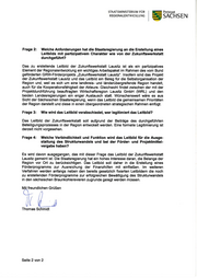 STAATSMINISTERIUM FÜR Freistaat REGIONALENTWICKLUNG SACHSEN Der Staatsminister SACHSISCHES STMTSMINISTERIUM FÜR REGIoNALENTWICKLUNG 01095 Dresden Durchwahl Präsidenten des Sächsischen Landtages Telefon +49 351 564-50000 Herrn Dr. Matthias Rößler Telefax +49 351 564-52901 Bernhard-von-Linde na u-Pla|z 1 01067 Dresden stm.schmidt@ smr.sachsen.de lhr Zeichen lhre Nachricht vom Kleine Anfrage der Abgeordneten Antonia Mertsching (DlE LINKE) 5.Mäz2O2O Drs.-Nr.:711916 Aktenzeichen Thema: Lausitzer Leitbildprozess im Rahmen des Strukturuvandels (bifte bei Antwort angeben) z-1053t1t49 Sehr geehrter Herr Präsident, Dtesden, 3rl,t03.iOJt den Fragen sind folgende Ausführungen vorangestellt: ,,Vorbemerkung: ln Anlage I des Referentenentwurfs ,,Struktur- stärkungsgesets Kohleregionen" wird auf drei Seiten ein Leitbild für die LausiE beschrieben und in der Anmerkung Handlungs- und Projektfelder identifiziert. Derzeit und bis zum Ende dieses Jahres führt die Zukunftswerkstatt Lausitz im Auftrag der Gebietskörper- schaften bzw. der Wirtschaftsregion LausiE GmbH einen Leitbild- MACH- WAS prozess durch," I WICHTIGES Arbeit€n in öffentlichen D;.ns Sachsrn Namens und im Auftrag der Sächsischen Staatsregierung beantworte ich die Kleine Anfrage wie folgt: Hau!anschdft: Sächslsches Staatsmlnlstedum Frage 1: Wie ist das Leitbild im Referentenentwurf des Strukturstär- f0r Reglonalentwlcklung kungsgeseEes zustande gekommen und wie ist dessen Archivstraße 1 01097 Dresden Verbindlich keit einzuschätsen? www.smr.sachsen.de Das Leitbild im Referentenentwurf wurde von der Staatsregierung auf VerkehßYeölndung: Grundlage eines Handlungsleitfadens der Prognos AG vom 5. Dezember Zu erreichen mit den Straßen- 2018 erstellt: bahnlinien 3,6,7,8, 13 (https://www.strukturentwickluns.sachsen.de/download/Handlunosleitfaden Ftlr Besucher mit Behinderungen -Struktu rentwickl u no-Brau n koh le reviere-Sachsen. pdf) befi nden sich gekennzeichnete Parkplätze am Königsufer. Für alle Besucherparkplätze gilt: lm Rahmen der Erstellung des Handlungsleitfadens wurden verschiedene Bitte beim Pbrtendienst melden. Workshops mit den wichtigsten regionalen Akteuren durchgeführt. Wesent- Bitle beachten Sie die allgemei- t- lich war aber bei dieser Leitbilderstellung die Abstimmung mit Brandenburg nen Hinweise zur Verarbeitung (v, (tt für die Lausitz beziehungsweise im Falle der Mitteldeutschen Region mit personenbezogener Daten durch o N Sachsen-Anhalt. Die Verbindlichkeit ergibt sich aus der geplanten das Sächsische Staatsministeri- o (\t Verankerung in einem Gesetz, wobeieine Fortentwicklung geplant ist. um frir Regionalentwicklung zur Efilllung der lnformationspfl ichten nach der Europäischen Daten- schutz-Grundverordnung auf www.smr.sachsen.de Seite 1 von 2