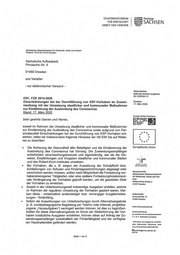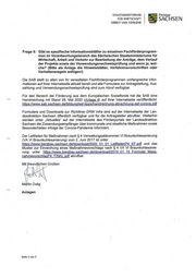 STAATSMINISTERIUM 01111111 11.16. Freistaat FÜR WIRTSCHAFT 111111111\ .411111 11.1 SACHSEN ARBEIT UND VERKEHR C31 Frage 5: Gibt es spezifische Informationsblätter zu einzelnen Fachförderprogram- men im Verantwortungsbereich des Sächsischen Staatsministeriums für Wirtschaft, Arbeit und Verkehr zur Bearbeitung der Anträge, dem Verlauf der Projekte sowie der Verwendungsnachweisprüfung und wenn ja, wel- che? (Bitte als Anlage die Hinweisblätter, Verfahrensvorschriften oder Verhaltensregeln anfügen!) Die SAB stellt zu allen von ihr verwalteten Fachförderprogrammen umfangreiche Infor- mationen auf ihrer Internetseite aktuell bereit und alle Formulare zur Antragstellung, Aus- zahlung und Verwendungsnachweisprüfung sind zum Abruf verfügbar. Für den Bereich der Förderung aus dem Europäischen Sozialfonds hat die SAB eine Handreichung mit Stand 28. Mai 2020 (Anlage 4) auf ihrer Internetseite veröffentlicht: https://www.sab.sachsen.de/bildung/esf-tipps/handreichung-abrechnung-esf-corona.pdf Formulare und Downloads zur Richtlinie GRW Infra sind auf der Internetseite der Lan- desdirektion Sachsen öffentlich verfügbar und für die Antragsteller abrufbar. Weiterhin werden unter „Aktuelles" auf der Internetseite des Förderportals der Landesdirektion Sachsen die Zuwendungsempfänger über kommunale und staatliche Maßnahmen sowie Besonderheiten infolge der Corona-Pandemie informiert. Der Leitfaden für Maßnahmen nach § 4 Verwaltungsabkommen VI Braunkohlesanierung (VA VI Braunkohlesanierung) vom 2. Juni 2017 ist unter https://www.bergbau.sachsen.de/download/2020 01 01 LeitfadenP4 EF.pdf und das Muster zur Einreichung eines Maßnahmevorschlags nach § 4 VA VI Braunkohlesanie- rung unter https://www.bergbau.sachsen.de/download/2019 01 15 Formular Mass- nahmevorschlagP4 FINAL.pdf abrufbar. Mit freundghen Grüßen Mättin Dulig Anlagen Seite 3 von 3