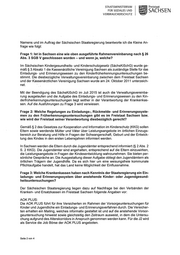 STAATSMlNlSTERlUM Freistaat FÜR SOZIALES UND SACHSEN VERBRAUCHERSCHUTZ Namens und im Auftrag der Sächsischen Staatsregierung beantworte ich die Kleine An- frage wie folgt: Frage 1: Ist in Sachsen eine wie oben ausgeführte Rahmenvereinbarung nach § 26 Abs. 3 SGB V geschlossen worden - und wenn ja, welche? Im Sächsischen Kindergesundheits- und Kinderschutzgesetz (SächsKiSchG) wurde ge- mäß § 3 Absatz 1 die Kassenärztliche Vereinigung Sachsen als zuständige Stelle für das Einladungs- und Erinnerungswesen zu den Kinderfrüherkennungsuntersuchungen be- stimmt. Die diesbezügliche Verwaltungsvereinbarung zwischen dem Freistaat Sachsen und der Kassenärztlichen Vereinigung Sachsen wurde am 24. Oktober 2011 unterzeich- net. Mit der Beendigung des SächsKiSchG im Juli 2015 ist auch die Verwaltungsvereinba- rung ausgelaufen und die Aufgabe des Einladungs- und Erinnerungswesen zu den Kin- derfrüherkennungsuntersuchungen liegt seither in der Verantwortung der Krankenkas- sen. Auf die Ausführungen zu Frage 3 wird verwiesen. Frage 2: Welche Regelungen zu Einladungs-, Rückmelde- und Erinnerungssyste- men zu den Früherkennungsuntersuchungen gibt es im Freistaat Sachsen bzw. wie wird der Freistaat seiner Verantwortung diesbezüglich gerecht? Gemäß§ 2 des Gesetzes zur Kooperation und Information im Kinderschutz (KKG) sollen Eltern sowie werdende Mütter und Väter über Leistungsangebote im örtlichen Einzugs- bereich zur Beratung und Hilfe in Fragen der Schwangerschaft, Geburt und der Entwick- lung des Kindes in den ersten Lebensjahren informiert werden. In Sachsen werden die Eltern durch die Jugendämter entsprechend informiert(§ 2 Abs. 2 S. 2 KKG). Die Jugendämter sind angehalten, entsprechend auf die Eltern einzuwirken, die Leistungsangebote in Fragen der Kindesentwicklung wahrzunehmen. Sie bieten per- sönliche Gespräche an. Die Ausgestaltung dieser Aufgabe obliegt den Jugendämtern als örtlichen Trägern der Jugendhilfe. Da es sich hier um eine weisungsfreie kommunale Pflichtaufgabe handelt, hat das Land keine Möglichkeit der Einflussnahme. Frage 3: Welche Krankenkassen haben nach Kenntnis der Staatsregierung ein Ein- ladungs- und Erinnerungssystem über anstehende Kinder- oder Jugendgesund- heitsuntersuchungen? Der Sächsischen Staatsregierung liegen dazu auf Nachfrage bei den Verbänden der Kranken- und Ersatzkassen im Freistaat Sachsen folgende Angaben vor: AOK PLUS: Die AOK PLUS führt für ihre Versicherten im Rahmen der Vorsorgeuntersuchungen für Kinder und Jugendliche ein Einladungs- und Erinnerungsverfahren durch. Die Versicher- ten erhalten ein Mailing, welches informativ gestaltet ist und auf die anstehende Vorsor- geuntersuchung hinweist sowie gleichzeitig den Zeitraum ausweist, in dem die Untersu- chung aufgrund des Alterskorridors in Anspruch genommen werden kann. Für die J2 wird als Service die Job Börse der AOK PLUS angeboten. Seite 2 von 4