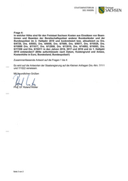 STAATSMINISTERIUM Freistaat DES INNERN SACHSEN Frage 4: In welcher H6he sind für den Freistaat Sachsen Kosten aus Einsätzen von Beam- tinnen und Beamten der Bereitschaftspolizei anderer Bundesl'a'nder und der Bundespolizei im 2. Halbjahr 2019 und konkretisiert bzw. aktualisiert zu Drs. 6/4729, Drs. 6l5553, Drs. 6/6658, Drs. 6/7689, Drs. 6/9077, Drs. 6I10029, Drs. 6I10888 Drs. 6I11617, Drs. 6l12908, Drs. 6113910, Drs. 6I14892, 6/16083, Drs. 6I17208 und Drs. 6I18211 in den Jahren 2016, 2017 und 2018 und im 1. Halbjahr 2019 entstanden? (Bitte aufschlüsseln nach Datum, Kostengrund und Anlass, Kostenhöhe in Euro, Bundesland, Bundespolizei!) Zusammenfassende Antwort auf die Fragen 1 bis 4: Es wird auf die Antworten der Staatsregierung auf die Kleinen Anfragen Drs.-Nrn. 7/111 und 7/1022 verwiesen. Mi undlichen Grüßen /// ‚f l Laß» Pro . Dr. Roland'Wöller Seite 2 von 2