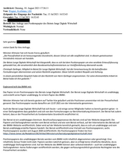 Archiviert: Dienstag, 10. August 2021 17:36:11 Von: Wagner, Korbinian, LB1 Zeitpunkt des Eingangs der Nachricht: Tue, 13 Jul 2021 16:52:43 Gesendet: Tue, 13 Jul 2021 16:52:43 An: Betreff: Ihre Anfrage zum Positionspapier des Beirats Junge Digitale Wirtschaft Wichtigkeit: Normal Vertraulichkeit: None Sehr geehrter , vielen Dank für Ihre Anfrage. Minister Altmaier hat sich heute hierzu geäußert: „Die Pressefreiheit ist ein herausragendes Grundrecht, dessen Schutz wir alle verpflichtet sind. In diesem gemeinsamen Verständnis müssen wir handeln. Der Beirat Junge Digitale Wirtschaft hat klargestellt, dass es sich bei dem Positionspapier um eine veraltete Entwurfsfassung gehandelt hat, die versehentlich dem Bundeswirtschaftsministerium zur Veröffentlichung übersandt wurde. Christoph Gerlinger, Mitglied im Beirat für Junge Digitale Wirtschaft, hat die Verantwortung für die betreffenden Formulierungen übernommen und seinen Rücktritt angeboten. Dieser Schritt verdient Respekt und Achtung. In einem persönlichen Gespräch habe ich den Rücktritt von Herrn Gerlinger angenommen. Für seine ehrenamtliche Arbeit im Beirat habe ich ihm gedankt.“ Ergänzend teilt das BMWi mit: Das Papier ist ein Positionspapier des Beirats Junge Digitale Wirtschaft. Der Beirat Junge Digitale Wirtschaft ist unabhängig und erstellt seine Papier unabhängig. Es ist kein Papier des BMWi. Minister Altmaier hat sich bereits gestern auf Twitter klar geäußert und die Positionen unvereinbar mit der Pressefreiheit genannt. Das Positionspapier wurde daraufhin am 12.07.2021 von der Internetseite genommen. Auch der Beirat Junge Digitale Wirtschaft hat sich heute – und einige seiner Mitglieder hatten es bereits gestern getan - in einer Stellungnahme dazu geäußert und sich von den Formulierungen zur Berichterstattung distanziert. Der Beirat hat zudem betont, dass er der Pressefreiheit als fundamentales Grundrecht verpflichtet ist. Der Beirat ist ein unabhängiges Gremium. Beschlussfassungsprozesse des Beirats sind auf der Website dargestellt. Die Papiere und Stellungnahmen werden vom Beirat verfasst und wie vom Beirat verfasst, auf der Internetseite des Beirats auf der BMWi-Website veröffentlicht. Dabei wird auf der Website kenntlich gemacht, dass es sich um unabhängige und vom Beirat unabhängig erstellte Papiere handelt. Der Beirat veröffentlicht eine Vielzahl von Positionspapieren, sechs Positionspapiere wurden seit August 2020 veröffentlicht. Die Positionspapiere finden Sie hier: https://www.bmwi.de/Redaktion/DE/Artikel/Ministerium/beiratjungedigitalewirtschaft.html Positionspapiere des unabhängigen Beirats werden vom BMWi nicht inhaltlich abgenommen oder genehmigt. Eine inhaltliche Zensur findet nicht statt. Papiere werden natürlich gelesen, aber es erfolgt keine inhaltliche Abnahme, da es unabhängige Stellungnahmen sind. Auf der Website des BMWi können aber selbstverständlich – auch bei unabhängigen Stellungnahmen –keine Äußerungen veröffentlicht werden, die gegen verfassungsrechtlich geschützte Rechtsgüter wie die Pressefreiheit verstoßen.