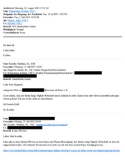 Von: Datum: Montag, 12. Juli 2021 um 19:37 An: Lutz Gärtner <lutz.gaertner@bmwi.bund.de> Cc: Betreff: Re: Papier Börsengänge Lieber Herr Gärtner, Hier ist tatsächlich eine falsche Version des Papiers an Sie gegangen. Genau in diesem Punkt hatten wir das Papier nämlich noch editiert. Wie das passiert ist muss ich erst noch recherchieren. Ich entschuldige mich aber bereits für diesen blöden Fehler. Wir geben ein dementsprechendes Statement ab und übersenden zeitnah die finale, korrekte Version des Papiers. Liebe Grüße <lutz.gaertner@bmwi.bund.de> schrieb am Mo. 12. Juli 2021 um 15:57: Liebe , lieber , uns hat zu dem Positionspapier eine Presseanfrage erreicht, in der die Vorschläge des Beirats zur Presse aufgegriffen werden (u.a., die Presse dazu zu verpflichten, über kleine IPOs zu berichten, außerdem soll eine kostengünstige Nutzung von Presseerzeugnisse für die Werbung der Emittenten eingeführt werden. Zudem soll es eine "Disziplinierung der Presse zu sachlicher, richtiger und vollständiger Information" geben). Ich schließe nicht aus, dass Sie hierzu ebenfalls seitens der Presse angesprochen werden. Viele Grüße Lutz Gärtner, VIB1 Tel:6051 Mobil: