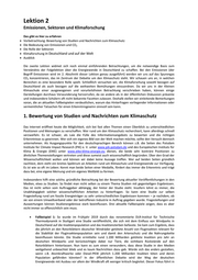 der Berichterstattung dazu, dass es gegenläufige Informationen zum aktuell eingeschlagenen Weg schwer haben, während aus kritischen Meinungen z.B. zu fossilen Energien schneller Schlagzeilen werden. Zum anderen könnte man hinter einer solchen Studie Gegner der Windkraft vermuten. Es handelt sich in diesem Fall aber um eine unabhängige Studie und ein entsprechender Auftraggeber im Hintergrund ist nicht zu erkennen. Wer sich dann aber genauer mit dem maßgeblichen Wissenschaftler dieser Studie beschäftigt, kann einen Zusammenhang erkennen. Dr. Franz Trieb beschäftigt sich vorwiegend mit solarthermischen Kraftwerken. Solaranlagen stehen in Deutschland derzeit deutlich weniger im Fokus als Windkraftanlagen. Hier gibt es auch innerhalb der Forschung und Wirtschaft rund um Erneuerbare den Kampf um finanzielle Mittel, ein Argument gegen Windräder kann da zu einem Argument für Solarenergie werden. Das macht die Studie und deren weitere Diskussion mit Blick auf Artenschutz und Insektensterben nicht weniger wichtig, liefert aber evtl. Einblicke in die Motivation des oder der Macher. So könnte in diesem Fall eine Problematik bei der Windkraft zu einer besseren Berücksichtigung und Förderung von Solarkraftwerken in Deutschland führen, was wiederum mit einer stärkeren Förderung entsprechender Wissenschaftseinrichtungen einhergehen könnte – wie z.B. dem Stuttgarter DLR-Institut. • Fallbeispiel 2: Ein zweites Fallbeispiel dürfte noch deutlicher machen, warum man scheinbar gesicherte Nachrichten bzw. Meinungen hinterfragen sollte. So veröffentlichte der Deutsche Wetterdienst Ende April 2019 im Rahmen einer Meldung, dass es einen Dürresommer geben könnte, wenn es weiterhin nicht regnet. Es ist allgemein bekannt, dass Wetter ein chaotisches System ist und nur über einen kurzen Zeitraum relativ sichere Vorhersagen möglich sind. Für längere Zeiträume werden deshalb verschiedene Szenarien durchgespielt, wie in diesem Fall. Das es nach dem trockenen April bei weiterem Ausbleiben von Regen zur Dürre kommen könnte, ist ein solches logisches Szenario. Die Nachrichtenagentur dpa, die alle großen Medien mit Presseinformationen zu aktuellen Themen versorgt, machte daraus eine reale Warnung des Deutschen Wetterdienstes vor einem Dürresommer 2019. Das wurde kurz darauf durch die dpa als Falschmeldung korrigiert. Dennoch hielt sich das Thema 48 Stunden lang als eine zentrale Botschaft in den Medien, sogar die ARD-Tagesschau vermeldete „Wetterdienst warnt vor Dürresommer“, die Bild titelte „Metereologen sicher! Sahara-Sommer mit Mega-Dürre droht.“ Viele Tageszeitungen und Funkmedien griffen das Thema prominent auf. Die Korrektur wurde ignoriert und auch im Nachgang wurde die Falschmeldung nicht richtiggestellt. Dieses Beispiel zeigt, wie eine Nachricht ohne realen Hintergrund sich allein durch die damit verbundene Aufmerksamkeit beim Nutzer in den Medien halten kann. • Fallbeispiel 3: Ein aktuelles Beispiel macht deutlich, dass Einflüsse und Interessen hinter einer Nachricht manchmal auch gar nicht zu erkennen sind. Zur Veröffentlichung dieser Lektion machte das YouTube-Video von Rezo zur „Zerstörung der CDU“ Furore. Im Abschnitt zum Klimaschutz ab 5:28 Minuten Laufzeit des Videos rechnet Rezo mit der Klimapolitik der etablierten Parteien, vor allem mit der CDU, ab. Dabei verweist er auf viele wissenschaftliche Quellen. Wer diese Quellen tatsächlich prüft, wird schnell feststellen, dass sie sehr einseitig ausgewählt wurden und nur eine Meinung zum Thema widerspiegeln. In anderen Themenbereichen ist das ebenso. Bei über sieben Millionen Klicks (Stand 24. Mai 2019) haben 730.000 Nutzer einen Daumen hoch gegeben. Das bedeutet, jeder zehnte Nutzer hat den Argumenten zugestimmt – das zeigt, wie schnell eine Nachricht Meinung machen kann, ohne dass sie auf ausgewogenen Quellen und Fakten beruhen muss. So sind seine Äußerungen zur Einigkeit in der Wissenschaft leicht und schnell zu widerlegen, andere ebenso. Es ist auch das erste politische Video des YouTubers und taktisch klug vor dem Wahlwochenende zu Europa- und Kommunalwahlen platziert. Das Geschäftsmodell hinter dem YouTube-Kanal von Rezo läuft über ein Unternehmen der Ströer Media, ein international agierendes Unternehmen im Bereich der Online- und Außenwerbung, das u.a. den Webvideopreis veranstaltet, zu dessen Preisträgern 2018 auch Rezo zählte. Inwieweit ein Unternehmen, das mit Video- und Außenwerbung für diverse andere Unternehmen und auch politische Institutionen sein Geld verdient, ein Interesse an der „Zerstörung der CDU“ haben kann, bleibt spekulativ. Die Fallbeispiele sollen verdeutlichen, dass es sich immer lohnt, einen Blick hinter die jeweilige Nachricht zu werfen. Zum einen können sie durch Auftraggeber aus dem Lobbybereich etwa von NGOs wie Greenpeace über die Industrie bis zur Bergbaugewerkschaft beeinflusst sein, zum anderen sollte man gerade bei wissenschaftlichen Untersuchungen die Motivation hinterfragen. Einrichtungen in der Wissenschaft sind in der Regel stark abhängig von finanziellen Mitteln zu bestimmten Forschungsthemen entweder für öffentliche Auftraggeber oder für die Wirtschaft. Ein Wissenschaftler, der Themen rund um Erneuerbare Energien bearbeitet, wird ganz sicher andere Erkenntnisse propagieren als ein Wissenschaftler, der sich mit fossilen Kraftwerken auseinandersetzt. In wichtigen Fällen holt man sich, wie bei Krankheiten beim Arzt, eine zweite Meinung ein – beim Klimaschutz hilft es der Meinungsbildung ebenso, einen zweiten Blick auf die jeweils andere Argumentation zu werfen.