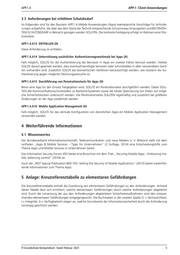 APP.1.4 APP.1: Client-Anwendungen 3.3 Anforderungen bei erhöhtem Schutzbedarf Im Folgenden sind für den Baustein APP.1.4 Mobile Anwendungen (Apps) exemplarische Vorschläge für Anforde- rungen aufgeführt, die über das dem Stand der Technik entsprechende Schutzniveau hinausgehen und BEI ERHÖH- TEM SCHUTZBEDARF in Betracht gezogen werden SOLLTEN. Die konkrete Festlegung erfolgt im Rahmen einer Risi- koanalyse. APP.1.4.A13 ENTFALLEN (H) Diese Anforderung ist entfallen. APP.1.4.A14 Unterstützung zusätzlicher Authentisierungsmerkmale bei Apps (H) Falls möglich, SOLLTE für die Authentisierung der Benutzer in Apps ein zweiter Faktor benutzt werden. Hierbei SOLLTE darauf geachtet werden, dass eventuell benötigte Sensoren oder Schnittstellen in allen verwendeten Gerä- ten vorhanden sind. Zusätzlich SOLLTE bei biometrischen Verfahren berücksichtigt werden, wie resistent die Au- thentisierung gegen mögliche Fälschungsversuche ist. APP.1.4.A15 Durchführung von Penetrationstests für Apps (H) Bevor eine App für den Einsatz freigegeben wird, SOLLTE ein Penetrationstest durchgeführt werden. Dabei SOLL- TEN alle Kommunikationsschnittstellen zu Backend-Systemen sowie die lokale Speicherung von Daten auf mögli- che Sicherheitslücken untersucht werden. Die Penetrationstests SOLLTEN regelmäßig und zusätzlich bei größeren Änderungen an der App wiederholt werden. APP.1.4.A16 Mobile Application Management (H) Falls möglich, SOLLTE für das zentrale Konfigurieren von dienstlichen Apps ein Mobile Application Management verwendet werden. 4 Weiterführende Informationen 4.1 Wissenswertes Der Bundesverband Informationswirtschaft, Telekommunikation und neue Medien e. V. (Bitkom) stellt mit dem Leitfaden „Apps & Mobile Services – Tipps für Unternehmen“ (2. Auflage, 2014) eine Entscheidungshilfe zum Thema Apps und Mobile Services in Unternehmen bereit. Das Information Security Forum (ISF) bietet eine Broschüre mit dem Titel „ Securing Mobile Apps – Embracing mo- bile, balancing control“ (2018) an. Auch die „NIST Special Publication 800-163: Vetting the Security of Mobile Applications“ (2015) bietet weiterfüh- rende Informationen zum Thema Apps. 5 Anlage: Kreuzreferenztabelle zu elementaren Gefährdungen Die Kreuzreferenztabelle enthält die Zuordnung von elementaren Gefährdungen zu den Anforderungen. Anhand dieser Tabelle lässt sich ermitteln, welche elementaren Gefährdungen durch welche Anforderungen abgedeckt sind. Durch die Umsetzung der aus den Anforderungen abgeleiteten Sicherheitsmaßnahmen wird den entspre- chenden elementaren Gefährdungen entgegengewirkt. Die Buchstaben in der zweiten Spalte (C = Vertraulichkeit, I = Integrität, A = Verfügbarkeit) zeigen an, welche Grundwerte der Informationssicherheit durch die Anforderung vorrangig geschützt werden. IT-Grundschutz-Kompendium: Stand Februar 2021 5