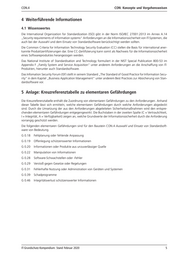 CON.4 CON: Konzepte und Vorgehensweisen 4 Weiterführende Informationen 4.1 Wissenswertes Die International Organization for Standardization (ISO) gibt in der Norm ISO/IEC 27001:2013 im Annex A.14 „Security requirements of information systems“ Anforderungen an die Informationssicherheit von IT-Systemen, die auch bei der Auswahl und dem Einsatz von Standardsoftware berücksichtigt werden sollten. Die Common Criteria for Information Technology Security Evaluation (CC) stellen die Basis für international aner- kannte Produktzertifizierungen dar. Eine CC-Zertifizierung kann somit als Nachweis für die Informationssicherheit eines Softwareproduktes herangezogen werden. Das National Institute of Standardisation and Technology formuliert in der NIST Special Publication 800-53 im Appendix F „Family System and Service Acquisition“ unter anderem Anforderungen an die Anschaffung von IT- Produkten, hierunter auch Standardsoftware. Das Infomation Security Forum (ISF) stellt in seinem Standard „The Standard of Good Practice for Information Secu- rity“ in dem Kapitel „Business Application Management“ unter anderem Best Practices zur Absicherung von Stan- dardsoftware vor. 5 Anlage: Kreuzreferenztabelle zu elementaren Gefährdungen Die Kreuzreferenztabelle enthält die Zuordnung von elementaren Gefährdungen zu den Anforderungen. Anhand dieser Tabelle lässt sich ermitteln, welche elementaren Gefährdungen durch welche Anforderungen abgedeckt sind. Durch die Umsetzung der aus den Anforderungen abgeleiteten Sicherheitsmaßnahmen wird den entspre- chenden elementaren Gefährdungen entgegengewirkt. Die Buchstaben in der zweiten Spalte (C = Vertraulichkeit, I = Integrität, A = Verfügbarkeit) zeigen an, welche Grundwerte der Informationssicherheit durch die Anforderung vorrangig geschützt werden. Die folgenden elementaren Gefährdungen sind für den Baustein CON.4 Auswahl und Einsatz von Standardsoft- ware von Bedeutung. G 0.18 Fehlplanung oder fehlende Anpassung G 0.19 Offenlegung schützenswerter Informationen G 0.20 Informationen oder Produkte aus unzuverlässiger Quelle G 0.22 Manipulation von Informationen G 0.28 Software-Schwachstellen oder -Fehler G 0.29 Verstoß gegen Gesetze oder Regelungen G 0.31 Fehlerhafte Nutzung oder Administration von Geräten und Systemen G 0.39 Schadprogramme G 0.46 Integritätsverlust schützenswerter Informationen IT-Grundschutz-Kompendium: Stand Februar 2020 5
