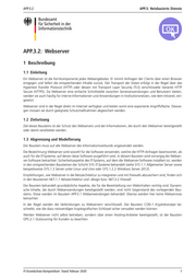 APP.3.2 APP.3: Netzbasierte Dienste APP.3.2: Webserver 1 Beschreibung 1.1 Einleitung Ein Webserver ist die Kernkomponente jedes Webangebotes: Er nimmt Anfragen der Clients über einen Browser entgegen und liefert die entsprechenden Inhalte zurück. Der Transport der Daten erfolgt in der Regel über das Hypertext Transfer Protocol (HTTP) oder dessen mit Transport Layer Security (TLS) verschlüsselte Variante HTTP Secure (HTTPS). Da Webserver eine einfache Schnittstelle zwischen Serveranwendungen und Benutzern bieten, werden sie auch häufig für interne Informationen und Anwendungen in Institutionsnetzen, wie dem Intranet, ein- gesetzt. Webserver sind in der Regel direkt im Internet verfügbar und bieten somit eine exponierte Angriffsfläche. Deswe- gen müssen sie durch geeignete Schutzmaßnahmen abgesichert werden. 1.2 Zielsetzung Ziel dieses Bausteins ist der Schutz des Webservers und der Informationen, die durch den Webserver bereitgestellt oder damit verarbeitet werden. 1.3 Abgrenzung und Modellierung Der Baustein muss auf alle Webserver des Informationsverbunds angewendet werden. Die Bezeichnung Webserver wird sowohl für die Software verwendet, welche die HTTP-Anfragen beantwortet, als auch für die IT-Systeme, auf denen diese Software ausgeführt wird. In diesem Baustein wird vorrangig die Webser- ver-Software betrachtet. Sicherheitsaspekte des IT-Systems, auf dem die Webserver-Software installiert ist, werden in den entsprechenden Bausteinen der Schicht SYS IT-Systeme behandelt (siehe SYS.1.1 Allgemeiner Server sowie beispielsweise SYS.1.3 Server unter Linux und Unix oder SYS.1.2.2 Windows Server 2012). Empfehlungen, wie Webserver in die Netzarchitektur zu integrieren und mit Firewalls abzusichern sind, finden sich in den Bausteinen NET.1.1 Netzarchitektur und -design bzw. NET.3.2 Firewall. Der Baustein behandelt grundsätzliche Aspekte, die für die Bereitstellung von Webinhalten wichtig sind. Dynami- sche Inhalte, die durch Webanwendungen bereitgestellt werden, sind nicht Gegenstand des vorliegenden Bau- steins. Diese werden im Baustein APP.3.1 Webanwendungen behandelt. Ebenso werden hier keine Webservices betrachtet. In der Regel werden die Verbindungen zu Webservern verschlüsselt. Der Baustein CON.1 Kryptokonzept be- schreibt, wie die dazu notwendigen kryptografischen Schlüssel sicher verwaltet werden können. Werden Webserver nicht selbst betrieben, sondern über einen Hosting-Anbieter bereitgestellt, ist der Baustein OPS.2.1 Outsourcing für Kunden zu beachten. IT-Grundschutz-Kompendium: Stand Februar 2020 1