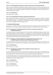 SYS.4.1 SYS.4: Sonstige Systeme SYS.4.1.A12 Ordnungsgemäße Entsorgung von Geräten und schützenswerten Betriebsmitteln (B) Bevor die Institution Altgeräte entsorgt oder zurückgibt, MÜSSEN alle vertraulichen Daten auf den Geräten sicher gelöscht werden. Ist das nicht möglich, MÜSSEN die Massenspeicher ausgebaut und durch geeignete Prozesse ver- nichtet werden. Mit der Entsorgung beauftragte Dienstleister MÜSSEN verpflichtet werden, die erforderlichen Si- cherheitsmaßnahmen einzuhalten. SYS.4.1.A13 ENTFALLEN (B) Diese Anforderung ist entfallen. SYS.4.1.A22 Ordnungsgemäße Entsorgung ausgedruckter Dokumente (B) Nicht benötigte, aber ausgedruckte Dokumente mit institutionskritischen Informationen MÜSSEN in geeigneter Weise vernichtet werden, z. B. in geeigneten Papiercontainern. Sind Heimarbeitsplätze mit Druckern, Kopierern oder Multifunktionsgeräten ausgestattet, SOLLTE gewährleistet werden, dass die ausgedruckten Informationen auch direkt vor Ort geeignet vernichtet werden können. 3.2 Standard-Anforderungen Gemeinsam mit den Basis-Anforderungen entsprechen die folgenden Anforderungen dem Stand der Technik für den Baustein SYS.4.1 Drucker, Kopierer und Multifunktionsgeräte. Sie SOLLTEN grundsätzlich erfüllt werden. SYS.4.1.A4 Erstellung eines Sicherheitskonzeptes für den Einsatz von Druckern, Kopieren und Multifunktionsgeräten (S) Die Institution SOLLTE ein Sicherheitskonzept für Drucker, Kopierer und Multifunktionsgeräte entwickeln. Darin SOLLTE geregelt werden, welche Anforderungen und Vorgaben an die Informationssicherheit der Geräte gestellt und wie diese erfüllt werden sollen. Es SOLLTE auch festgelegt werden, welche Funktionen von welchen Benutzern unter welchen Bedingungen administriert beziehungsweise genutzt werden dürfen. Der ISB SOLLTE auf Basis des Sicherheitskonzepts eine Administrationsrichtlinie ausarbeiten. SYS.4.1.A5 Erstellung von Benutzerrichtlinien für den Umgang mit Druckern, Kopierern und Multifunktionsgeräten [Informationssicherheitsbeauftragter (ISB)] (S) Für die Benutzer SOLLTE der ISB ein Merkblatt erstellen, auf dem alle Sicherheitsvorgaben zum Umgang mit den Geräten übersichtlich und verständlich zusammengefasst sind. Das Merkblatt SOLLTE allen Benutzern bekannt sein. SYS.4.1.A6 ENTFALLEN (S) Diese Anforderung ist entfallen. SYS.4.1.A7 Beschränkung der administrativen Fernzugriffe auf Drucker, Kopierer und Multifunktionsgeräte (S) Der IT-Betrieb SOLLTE sicherstellen, dass der administrative Fernzugriff auf Drucker, Kopierer und Multifunktionsge- räte nur einer klar definierten Gruppe an Administratoren und Servicetechnikern ermöglicht wird. Das SOLLTE auch dann gewährleistet sein, wenn die Institution eine zentrale Geräteverwaltungssoftware einsetzt. Es SOLLTE festgelegt werden, ob die Anzeige des Bedienfelds über ein Datennetz eingesehen werden kann. Wenn dies gewünscht ist, SOLLTE es nur an Mitarbeiter des IT-Betriebs übertragen werden können. Auch SOLLTE dies mit den betroffenen Benutzern abgestimmt sein. SYS.4.1.A8 ENTFALLEN (S) Diese Anforderung ist entfallen. SYS.4.1.A9 ENTFALLEN (S) Diese Anforderung ist entfallen. IT-Grundschutz-Kompendium: Stand Februar 2020 5