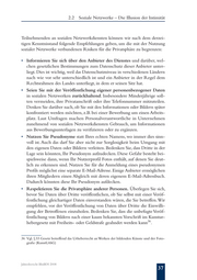 2.2 Soziale Netzwerke – Die Illusion der Intimität Risiken für die Privatsphäre, die mit der Veröffentlichung von Daten in per- sönlichen Profilen einhergehen können, sowie eine Aufklärung darüber, wie Nutzende mit personenbezogenen Daten Dritter verfahren müssen. Eine Ver- wendung von personenbezogenen Nutzungsdaten für Werbezwecke ist nach dem Telemediengesetz (TMG) nur zulässig, soweit die Betroffenen wirksam darin eingewilligt haben. Bei Werbemaßnahmen aufgrund von Profildaten ist den Betroffenen nach dem BDSG mindestens eine Widerspruchsmöglichkeit einzuräumen. Die Aufsichtsbehörden empfehlen den Anbietern, die Nutzen- den selbst darüber entscheiden zu lassen, ob und ggf. welche Profil- oder Nut- zungsdaten zur zielgerichteten Werbung genutzt werden. Eine Speicherung personenbezogener Nutzungsdaten über das Ende der Ver- bindung hinaus ist nur gestattet, soweit diese Daten zur Abrechnung gegen- über den Nutzenden erforderlich sind. Für die vorauseilende Speicherung von Nutzungsdaten für eventuelle zukünftige Strafverfolgungszwecke gibt es keine Rechtsgrundlage. Eine solche Speicherung wird auch nicht durch die Bestim- 31 mungen zur Vorratsdatenspeicherung vorgeschrieben. Anbieter sind nach dem TMG darüber hinaus verpflichtet, das Handeln in sozialen Netzwerken anonym oder unter Pseudonym zu ermöglichen. Das gilt unabhängig davon, ob sich die Nutzenden gegenüber dem Anbieter des sozi- alen Netzwerks selbst mit ihren Echtdaten identifizieren müssen. Dieser muss auch die erforderlichen technisch-organisatorischen Maßnahmen zur Gewähr- leistung der Datensicherheit treffen und dabei insbesondere einen systema- tischen oder massenhaften Export oder Download von Profildaten aus dem Angebot verhindern. Des Weiteren fordern die Aufsichtsbehörden die Anbieter sozialer Netzwerke auf, datenschutzfreundliche Standardeinstellungen für ihre Dienste zu wählen, durch die die Privatsphäre der Nutzenden möglichst umfassend geschützt wird. Diese Standardeinstellungen sind besonders restriktiv zu fassen, wenn sich das Portal an Kinder richtet. Der Zugriff durch Suchmaschinen darf nur vorgese- hen werden, soweit die Nutzenden ausdrücklich eingewilligt haben. Schließ- lich ist den Nutzenden die Möglichkeit einzuräumen, ihre Profile auf einfa- che Weise selbst zu löschen. Zusätzlich empfehlen die Aufsichtsbehörden den 31 Vgl. 6.1 Jahresbericht BlnBDI 2008 35