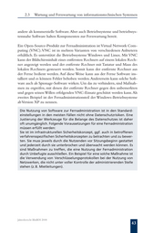 2.3 Wartung und Fernwartung von informationstechnischen Systemen andere als kommerzielle Software. Aber auch Betriebssysteme und betriebssys- temnahe Software halten Komponenten zur Fernwartung bereit. Ein Open-Source-Produkt zur Fernadministration ist Virtual Network Com- puting (VNC). VNC ist in mehren Varianten von verschiedenen Anbietern erhältlich. Es unterstützt die Betriebssysteme Windows und Linux. Mit VNC kann der Bildschirminhalt eines entfernten Rechners auf einem lokalen Rech- ner angezeigt werden und der entfernte Rechner mit Tastatur und Maus des lokalen Rechners gesteuert werden. Somit kann der entfernte Rechner aus der Ferne bedient werden. Auf diese Weise kann aus der Ferne Software ins- talliert und es können Fehler behoben werden. Andererseits kann solche Soft- ware auch als Spionage-Software wirken. Um das zu verhindern, sind Maßnah- men zu ergreifen, mit denen der entfernte Rechner gegen den unbemerkten und gegen seinen Willen erfolgenden VNC-Einsatz geschützt werden kann. Als zweites Beispiel ist der Fernadministrationsteil der Windows-Betriebssysteme ab Version XP zu nennen. Die Nutzung von Software zur Fernadministration ist in den Standard einstellungen in den meisten Fällen nicht ohne Datenschutzrisiken. Eine Justierung der Werkzeuge für die Belange des Datenschutzes ist daher oft unumgänglich. Folgende Voraussetzungen für eine Fernadministration müssen erfüllt werden: Sie ist im infrastrukturellen Sicherheitskonzept, ggf. auch in betroffenen verfahrensspezifischen Sicherheitskonzepten zu betrachten und zu bewer- ten. Sie muss jeweils durch die Nutzenden vor Sitzungsbeginn gestattet und jederzeit durch sie unterbrochen und überwacht werden können. Es sind Maßnahmen zu treffen, die eine Nutzung der Fernadministration durch Unbefugte ausschließen. Ein Beispiel für eine solche Maßnahme ist die Verwendung von Verschlüsselungsprotokollen bei der Nutzung von Netzwerken, die nicht unter voller Kontrolle der administrierenden Stelle stehen (z. B. Mietleitungen). Jahresbericht BlnBDI 2008 43