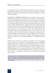 Kapitel 2 Schwerpunkte zu erfolgen hätte, wenn staatliche Stellen der USA dieses fordern würden. Das Wirtschaftsunternehmen ist unserer Forderung, andere Lösungen als die Beauf- tragung amerikanischer Unternehmen für die Datenverarbeitungen zu finden, bisher nicht gefolgt. Google Text & Tabellen (Google Docs) ist ein Angebot von Google zur Erstellung und Speicherung von Dokumenten, Tabellen und Präsentationen, also zur Nutzung üblicher Office-Programme. Die Nutzung von Google Text & Tabellen unterscheidet sich jedoch in der normalen täglichen Anwendung von den übrigen Office-Paketen dadurch, dass die Verarbeitung über das Inter- net bei Google stattfindet und die erstellten Dateien bei Google gespeichert werden. Man kann auch Dateien beliebiger Dokumenten-Formate zu Google hochladen und dort verwalten. Bei dem Angebot von Google handelt es sich um ein Software-as-a-Service-Angebot in einer Public Cloud. Die Nutzung des Angebots führt zur Speicherung der Daten in einem Datencenter von Google, wobei der Ort der Speicherung nicht festgelegt ist, möglicherweise in den USA erfolgt. Damit greifen dann, wenn die Dokumente personenbezo- gene Daten erhalten, die verschärften rechtlichen Anforderungen bei Daten- transfers in Drittstaaten und die Zugriffsvorbehalte der amerikanischen Admi- nistration. Offenbar ist die Nutzung von Google Text & Tabellen auch zur Verwendung bei der Erstellung von Zeugnissen und dazugehörigen Listen in Berliner Schulen attraktiv. Eltern fragten uns, ob die Schule ihrer Kinder mit dem Ein- satz von Google Docs rechtmäßig handelt. Der Schulleiter erklärte in seiner Stellungnahme, dass es nach seiner Meinung keine bessere Lösung der Textver- arbeitungsaufgaben bei der Zeugniserstellung seiner Schule gäbe. Nach einem längeren Schriftwechsel mit dem Schulleiter teilte er mit, dass er die Nutzung von Google Docs eingestellt habe. Damit konnte von einer Beanstandung abge- sehen werden. Die Nutzung von Cloud-Diensten, bei denen personenbezogene Daten ent- weder in Länder ohne angemessenes Datenschutzniveau exportiert oder dem unkontrollierten Zugriff ausländischer Behörden ausgesetzt werden, ist unzulässig. 44 Jahresbericht BlnBDI 2011