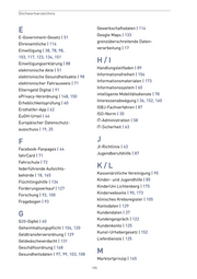 Stichwortverzeichnis E Gewerkschaftsdaten | 114 Google Maps | 133 E-Government-Gesetz | 51 grenzüberschreitende Daten Ehrenamtliche | 114 verarbeitung | 17 Einwilligung | 38, 78, 98, 103, 117, 123, 134, 151 Einwilligungserklärung | 88 H/I Handlungsleitfaden | 89 elektronische Akte | 51 Informationsfreiheit | 156 elektronische Gesundheitsakte | 98 Informationsmaterialen | 173 elektronischer Fahrausweis | 71 Informationssystem | 60 Elterngeld Digital | 91 intelligente Mobilitätsdienste | 78 ePrivacy-Verordnung | 148, 150 Interessenabwägung | 36, 152, 160 Erheblichkeitsprüfung | 60 ISBJ-Fachverfahren | 87 Ersthelfer-App | 62 ISO-Norm | 30 EuGH-Urteil | 44 IT-Administration | 58 Europäischer Datenschutz IT-Sicherheit | 63 ausschuss | 19, 25 F J JI-Richtlinie | 43 Facebook-Fanpages | 44 Jugendberufshilfe | 87 fahrCard | 71 Fahrschule | 72 federführende Aufsichts- K/L Kassenärztliche Vereinigung | 95 behörde | 18, 165 Kinder- und Jugendhilfe | 85 Flüchtlingshilfe | 134 KinderUni Lichtenberg | 175 Forderungsverkauf | 127 Kinderwebseite | 90, 173 Forschung | 92, 100 klinisches Krebsregister | 105 Fragebogen | 93 Kontodaten | 129 G Kundendaten | 37 Kundengespräch | 122 G20-Gipfel | 60 Kundenkonto | 125 Geheimhaltungspflicht | 104, 120 Kunst-Urhebergesetz | 152 Geldtransferverordnung | 129 Lieferdienste | 125 Geldwäscheverdacht | 131 Geschäftsordnung | 168 Gesundheitsdaten | 97, 99, 103, 108 M Marktortprinzip | 165 190