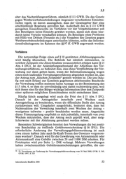 3.5 aber das Nachprüfungsverfahren, nämlich $ 111 GWB. Da das Gesetz gegen Wettbewerbsbeschränkungen insgesamt verschiedene Einsichts- rechte regelt, ist davon auszugehen, dass der Gesetzgeber hier eine abschließende Regelung getroffen hat. Außerhalb des in $111 GWB geregelten Einsichtsrechts im Verfahren vor der Vergabekammer soll den Beteiligten keine Einsicht gewährt werden, damit sich diese hier- durch keine Vorteile verschaffen können. Da Beteiligte ohne Probleme mit Hilfe von Dritten (Freunde etc.) die Vorgaben des Gesetzes gegen Wettbewerbsbeschränkungen unterlaufen könnten, sollte das Informa- tionsfreiheitsgesetz im Rahmen des $$ 97 ff. GWB angewandt werden. Verfahren Die notwendige Folge eines auf $ 10 gestützten Ablehnungsgesuchs wird häufig übersehen. Die Behörde hat nämlich mitzuteilen, zu welchem Zeitpunkt eine Einsichtnahme voraussichtlich erfolgen kann ($ 15 Abs. 4 IFG). Ist der Anknüpfungstatbestand der Abschluss des Ver- waltungsverfahrens, so bedeutet dies, dass diese Verpflichtung der Ver- waltung nur dann gelten kann, wenn der Informationszugang wegen eines noch laufenden Verwaltungsverfahrens abgelehnt worden ist, also der Antrag zum „falschen Zeitpunkt“ gestellt worden ist. Die uns (häu- fig erst nach Erlass) zur Kenntnis gegebenen ablehnenden Bescheide der Verwaltung treffen meistens keine Aussage zu der Bestimmung des $ 15 Abs. 4, so dass sie unvollständig und damit rechtswidrig sind, weil sich ihnen eine für den Bürger wichtige Information über den Zeitpunkt einer späteren möglichen Einsichtnahme nicht entnehmen lässt. Häufig falsch ausgelegt wird auch die Frist des $15 Abs.5 IFG. Danach ist der Antragsteller innerhalb zwei Wochen nach Antragstellung zu bescheiden, wenn die öffentliche Stelle den Antrag zurückweisen will. Umgekehrt ausgedrückt, bedeutet dies, dass bei Nichtreaktion der Verwaltung innerhalb zwei Wochen der Antrag - wenigstens teilweise - positiv beschieden werden muss. Angesichts dieser Fristenregelung empfiehlt es sich jedenfalls, innerhalb von zwei Wochen mitzuteilen, dass der Antrag noch geprüft wird, aber mög- licherweise mit der Ablehnung gerechnet werden müsse. Besondere Schwierigkeiten bereitet den Verwaltungen die bei positi- ven Bescheiden zu treffende Gebührenentscheidung ($ 16 IFG). Die erforderliche Änderung der Verwaltungsgebührenordnung ist nach etwa einem halben Jahr nach In-Kraft-Treten des Gesetzes vorgenom- men worden’, Danach wird für die Gewährung von Akteneinsicht oder Aktenauskunft eine Gebühr zwischen 20 und 1000 DM erhoben. Für Fotokopien wird pro Seite 1,- DM verlangt. Mehrere Verwaltungen haben zwischenzeitlich Gebührenentscheidungen getroffen, die ent- 36 22. Verordnung zur Änderung der Verwaltungsgebührenordnung vom 30. Mai 2000, GVBl. S. 349, GVBl. 1997, 5.525 Jahresbericht BinBDA 2000 53