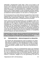 waltschaften uneingeschränkt Zugriff haben. Damit ist der Eingriff in die Grundrechte der Betroffenen wesentlich tiefer als bei der datenschutzfreund- licheren, nicht umgesetzten dezentralen Lösung bei den einzelnen Staatsan- waltschaften mit nach Erforderlichkeitskriterien festgelegten Zugriffsrechten anderer Dienststellen. Die Erforderlichkeit einer zentralen Datei auf Landes- ebene ist nicht zwingend gegeben, da das bundesweite Zentrales Staatsan- waltschaftliches Verfahrensregister bereits denselben Datenbestand mit einer grundsätzlichen Speicherungsdauer von zwei Jahren zur Verfügung stellt. Die Errichtungsanordnung enthält selbst bei den wesentlichen Datenverarbei- tungsschritten keine auf den Zweck der Datei „MESTA“ und die dort zu verar- beitenden Daten ausgerichteten Regelungen. Vielmehr wird lediglich auf die Datenverarbeitungsvorschriften der Strafprozessordnung verwiesen. Zudem scheint die Verweisungssystematik auch grundsätzlich weder sach- noch datenschutzgerecht. Bei einer Zentraldatei wie MESTA kommt es ins- besondere auf eine möglichst einheitliche Anwendung der Datenverarbei- tungsregelungen in der Praxis an, damit für alle Nutzer die Datenverarbeitung transparent und der Datenbestand aussagefähig ist. Ein Datenbestand, in dem gewichtige Sachverhalte ebenso behandelt worden sind wie Bagatellsa- chen, der mit vielen inaktuellen Datensätzen aus Altvorgängen befrachtet ist und bei dem die Qualität der Daten nicht durch stringente Verarbeitungsrege- lungen gesichert ist, erfüllt die Erwartungen der Anwender an Aussagefähig- keit und Transparenz der Datenverarbeitung nicht. Insgesamt haben wir kritisiert, dass die vorliegende Errichtungsanordnung mit ihren umfänglichen Anlagen grundsätzlich wenig transparent und in vielen Punkten unzulänglich ist. Wir haben eine Überarbeitung empfohlen. 5.4 Heiratsabsichten – datenschutzgerecht zu überprüfen Der Präsident des Oberlandesgerichts fordert grundsätzlich die vollstän- digen Akten der Ausländerbehörde derjenigen heiratswilligen in Deutsch- land lebenden Ausländer an, deren Heimatstaaten nur über ein mangel- haftes Urkundswesen verfügen und deshalb nicht die erforderliche Be- scheinigung darüber ausstellen können, dass keine Ehehindernisse be- stehen. Die Einsichtnahme in Akten der Ausländerbehörde seitens des Präsidenten des Brandenburgischen Oberlandesgerichts ist eine Datenerhebung bei Drit- ten, die nur in bestimmten Ausnahmefällen zulässig ist. Dies wäre dann der Fall, wenn die Bearbeitung eines vom Betroffenen gestellten Antrags ohne diese Datenerhebung nicht möglich oder es erforderlich ist, Angaben des Be- troffenen zu überprüfen. Dagegen ist es nicht gerechtfertigt, die Akten der Tätigkeitsbericht 2001 LDA Brandenburg 101