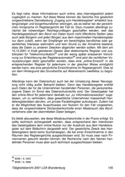 Es liegt nahe, diese Informationen auch online, also internetgestützt jedem zugänglich zu machen. Auf diese Weise können die Gerichte ihre gesetzlich vorgeschriebene Dienstleistung „Zugang zum Handelsregister“ erheblich kos- tengünstiger und bürgerfreundlicher erbringen, als es bisher bei der persönli- chen Vorsprache im Registergericht der Fall ist. Dazu mussten allerdings zu- nächst die notwendigen Rechtsgrundlagen geschaffen werden, weil das Handelsgesetzbuch den Abruf von Daten durch nicht öffentliche Stellen (also auch jede Bürgerin und jeden Bürger) aus dem maschinellen Handelsregister nur dann zuließ, wenn der Empfänger ein berechtigtes berufliches oder ge- werbliches Interesse wahrnahm und kein Grund zu der Annahme bestand, dass die Daten zu anderen Zwecken abgerufen werden sollten. Mit dem am 15.12.2001 in Kraft getretenen Gesetz über elektronische Register und Jus- 65 tizkosten für Telekommunikation und der wenig später erlassenen Verord- 66 nung zur Erleichterung der Registerautomation sind jetzt die rechtlichen Vo- raussetzungen dafür geschaffen worden, dass eine „online-Einsicht“ in die entsprechenden Register für jedermann in der gleichen Weise ermöglicht werden kann, wie eine persönliche Einsichtnahme im Registergericht. Dies ist vor dem Hintergrund des Grundrechts auf Akteneinsicht zweifellos zu begrü- ßen. Allerdings kann der Datenschutz auch bei der Umsetzung dieser Neurege- lung nicht völlig außer Betracht bleiben. Denn das Handelsregister enthält auch Daten der für die Unternehmen handelnden Personen, die personenbe- zogene Daten im Sinne des Datenschutzrechts sind. Der Gesetzgeber hat den online-Abruf für jedermann deshalb nur „zu Informationszwecken“ zuge- lassen, um zu verhindern, dass gewerbliche Unternehmen massenhaft Han- delsregisterdaten abrufen, um private Parallelregister aufzubauen. Zudem hat er die Möglichkeit des Ausschlusses von Nutzern für den Fall vorgesehen, dass die vorgeschriebene Stichprobenkontrolle einen Missbrauch des Abruf- verfahrens oder der übermittelten Daten belegen. Es bleibt abzuwarten, wie diese Missbrauchskontrolle in der Praxis erfolgt. Es sollte technisch sichergestellt werden, dass entsprechend den Intentionen des Gesetzgebers dem online-Nutzer nur der Ausdruck aus dem Handelsre- gister auf dem Bildschirm dargestellt wird. Der gesetzliche Zweck des Han- delsregisters deckt keine Suchstrategien, die bei einer Einsichtnahme in den Räumen des Registergerichts ausgeschlossen sind. So muss zwar nach Fir- mennamen gesucht werden können; die Recherche nach den Namen han- delnder Personen muss aber auch technisch ausgeschlossen bleiben. 65 BGBl. I S. 3422 66 BGBl. I S. 3688 Tätigkeitsbericht 2001 LDA Brandenburg 105