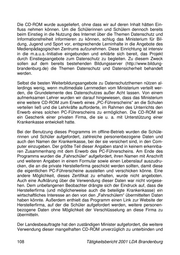 Die CD-ROM wurde ausgeliefert, ohne dass wir auf deren Inhalt hätten Ein- fluss nehmen können. Um die Schülerinnen und Schülern dennoch bereits beim Einstieg in die Nutzung des Internet über die Themen Datenschutz und Informationsfreiheit informieren zu können, schlug das Ministerium für Bil- dung, Jugend und Sport vor, entsprechende Lerninhalte in die Angebote des Medienpädagogischen Zentrums aufzunehmen. Diese Einrichtung ist intensiv in die m.a.u.s.-Initiative eingebunden und erklärte sich bereit, das Projekt durch Einstiegsangebote zum Datenschutz zu begleiten. Zu diesem Zweck sollen auf dem bereits bestehenden Bildungsserver (http://www.bildung- brandenburg.de) die Themen Datenschutz und Datensicherheit behandelt werden. Selbst die besten Weiterbildungsangebote zu Datenschutzthemen nützen al- lerdings wenig, wenn multimediale Lernmedien vom Ministerium verteilt wer- den, die Grundelemente des Datenschutzes außer Acht lassen. Von einem aufmerksamen Lehrer wurden wir darauf hingewiesen, dass das Ministerium eine weitere CD-ROM zum Erwerb eines „PC-Führerscheins“ an die Schulen verteilen ließ und die Lehrkräfte aufforderte, im Rahmen des Unterrichts den Erwerb eines solchen PC-Führerscheins zu ermöglichen. Die CD-ROM sei ein Geschenk einer privaten Firma, die sie u. a. mit Unterstützung einer Krankenkasse entwickelt hatte. Bei der Benutzung dieses Programms im offline-Betrieb wurden die Schüle- rinnen und Schüler aufgefordert, zahlreiche personenbezogene Daten und auch den Namen der Krankenkasse, bei der sie versichert sind, in den Com- puter einzugeben. Der größte Teil dieser Angaben stand in keinem erkennba- ren Zusammenhang mit dem Erwerb des PC-Führerscheins. Am Ende des Programms wurden die „Fahrschüler“ aufgefordert, ihren Namen mit Anschrift und weiteren Angaben in einem Formular sowie einen Lebenslauf auszudru- cken, die an die private Herstellerfirma geschickt werden sollten, damit diese die eigentlichen PC-Führerscheine ausstellen und verschicken könne. Eine andere Möglichkeit, dieses Zertifikat zu erhalten, wurde nicht angeboten. Auch eine Aufklärung über die Verwendung dieser Daten war nicht vorgese- hen. Dem unbefangenen Beobachter drängte sich der Eindruck auf, dass die Herstellerfirma (und möglicherweise auch die beteiligte Krankenkasse) ein wirtschaftliches Interesse an den von den „Fahrschülern“ übermittelten Daten haben könnte. Außerdem enthielt das Programm einen Link zur Website der Herstellerfirma, auf der die Schüler aufgefordert werden, weitere personen- bezogene Daten ohne Möglichkeit der Verschlüsselung an diese Firma zu übermitteln. Der Landesbeauftragte hat den zuständigen Minister aufgefordert, die weitere Verwendung dieser mangelhaften CD-ROM unverzüglich zu unterbinden und 108 Tätigkeitsbericht 2001 LDA Brandenburg