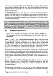 te Interessen der anderen Beteiligten oder Dritter eine Geheimhaltung erfor- dern. Soweit Sozialdaten betroffen sind, wird durch die Vorschriften zum So- zialdatenschutz konkretisiert, wann bestimmte Informationen in diesem Sinne geheim zu halten sind. Nach § 64 SGB VIII i. V. m. § 69 Abs. 1 Nr. 1 SGB X kommt bei einer Akten- einsicht eine Übermittlung der Sozialdaten zur Erfüllung sozialer Aufgaben in Betracht. Bei der Prüfung von Akteneinsichtsbegehren ist seitens der Ju- gendämter ein vorsichtiger Umgang mit den Sozialdaten der Beteiligten auch untereinander angeraten. Die Jugendämter sind verpflichtet, ihre Datenverarbeitungsvorgänge in den Akten vollständig zu dokumentieren. Im Rahmen der Akteneinsicht nach § 25 Abs. 1 SGB X können Sozialdaten anderer Beteiligter zur Kenntnis gegeben werden, soweit dies in den Grenzen von § 25 Abs. 3 SGB X, § 64 SGB VIII und §§ 68 - 77 SGB X zulässig ist. 6.7 Einkommensnachweise Immer wieder erreichen uns Anfragen über den Umgang mit Einkom- mensnachweisen bei der Elternbeitragsfestsetzung durch den Träger der Einrichtung. Nach § 17 Abs. 3 Satz 3 Kindertagesstättengesetz (KitaG) darf der Träger personenbezogene Daten verarbeiten, soweit dies für die Erhebung und Festsetzung der Elternbeiträge erforderlich ist. Welche Daten im Einzelnen benötigt werden, ergibt sich aus den entsprechenden Satzungen sowie aus § 17 Abs. 2 KitaG. Da die Elternbeiträge nach dem Einkommen gestaffelt werden, ist es unabdingbar, das Einkommen der Eltern festzustellen. Bei der Vorlage von Einkommensnachweisen ist allerdings zu beachten, dass diese Nachweise in der Regel Informationen enthalten, die nicht für die Fest- setzung der Elternbeiträge erforderlich sind. So kann einem Steuerbescheid beispielsweise eine etwaige Religionszugehörigkeit entnommen werden. Hin- sichtlich dieser Daten müssen die Eltern das Recht haben, diese Angaben zu schwärzen. Die aus datenschutzrechtlicher Sicht günstigste Lösung besteht darin, dass die zur Festsetzung des Elternbeitrages erforderlichen Angaben über das Einkommen den Nachweisen entnommen werden und darüber ein Aktenver- merk gefertigt wird. Die eigentlichen Nachweise könnten dann an die Eltern zurückgegeben oder im Falle von Kopien vernichtet werden. Damit würde sowohl der Löschungs- Tätigkeitsbericht 2001 LDA Brandenburg 113