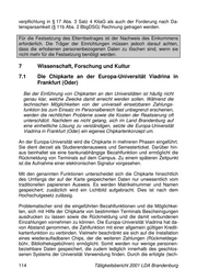 verpflichtung in § 17 Abs. 3 Satz 4 KitaG als auch der Forderung nach Da- tensparsamkeit (§ 11b Abs. 2 BbgDSG) Rechnung getragen werden. Für die Festsetzung des Elternbeitrages ist der Nachweis des Einkommens erforderlich. Die Träger der Einrichtungen müssen jedoch darauf achten, dass die erhobenen personenbezogenen Daten zu löschen sind, wenn sie nicht mehr für die Festsetzung benötigt werden. 7 Wissenschaft, Forschung und Kultur 7.1 Die Chipkarte an der Europa-Universität Viadrina in Frankfurt (Oder) Bei der Einführung von Chipkarten an den Universitäten ist häufig nicht genau klar, welche Zwecke damit erreicht werden sollen. Während die technischen Möglichkeiten von der universell einsetzbaren Zahlungs- funktion bis zum Einsatz im Personalbereich fast unbegrenzt erscheinen, werden die rechtlichen Probleme sowie die Kosten der Realisierung oft unterschätzt. Nachdem es nicht gelang, sich im Land Brandenburg auf eine einheitliche Lösung zu verständigen, setzte die Europa-Universität Viadrina in Frankfurt (Oder) ein eigenes Chipkartenkonzept um. An der Europa-Universität wird die Chipkarte in mehreren Phasen eingeführt. Sie dient derzeit als Studierendenausweis und Semesterticket. Darüber hin- aus beinhaltet sie eine bankunabhängige Bezahlfunktion und ermöglicht die Rückmeldung von Terminals auf dem Campus. Zu einem späteren Zeitpunkt ist die Aufnahme einer elektronischen Signatur vorgesehen. Mit den genannten Funktionen unterscheidet sich die Chipkarte hinsichtlich des Umfangs der auf der Karte gespeicherten Daten nur unwesentlich vom traditionellen papierenen Ausweis. Es werden Matrikelnummer und Namen gespeichert; zusätzlich wird ein Lichtbild aufgebracht. Dies ist nach dem Hochschulgesetz zulässig. Problematischer sind die eingeführten Bezahlfunktionen und die Möglichkei- ten, sich mit Hilfe der Chipkarte von bestimmten Terminals Bescheinigungen ausdrucken zu lassen sowie die Rückmeldung und die damit verbundenen Einzahlungen vornehmen zu können. Die Europa-Universität Viadrina hat da- von Abstand genommen, die Zahlfunktion mit einer allgemein gültigen Kredit- kartenfunktion zu verbinden. Vielmehr beschränkt sie sich auf die Installation eines wiederaufladbaren Chips, der die weiteren Zahlungen (Rückmeldege- bühr, Bibliotheksgebühren) ermöglicht. Somit werden nur wenige personen- beziehbare Daten gespeichert, die zudem lediglich innerhalb des geschlos- senen Systems der Universität Verwendung finden. Durch die erfolgte (tech- 114 Tätigkeitsbericht 2001 LDA Brandenburg