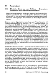 4.4 Personaldaten 4.4.1 Öffentlicher Dienst auf dem Prüfstand – Organisations- untersuchung durch eine Unternehmensberatung Eine Unternehmensberatung wurde damit beauftragt, ein Gutachten über Optimierungspotentiale der brandenburgischen Straßenbauverwaltung anzufertigen. Im Zuge der Erstellung des Gutachtens sollten auch mittels Interviews und Fragebögen Personaldaten der Beschäftigten erhoben werden. Bei einer externen Organisationsuntersuchung durch Private handelt es sich um eine Datenverarbeitung im Auftrag i. S. v. § 11 Brandenburgisches Da- tenschutzgesetz (BbgDSG). Dies setzt voraus, dass die Verantwortung für die Organisationsuntersuchung bei der auftraggebenden Stelle verbleibt und die Unternehmensberatung lediglich untergeordnete Hilfsaufgaben bei der Verarbeitung personenbezogener Daten durchführt. Sofern eine private Auf- tragnehmerin selbständig und eigenverantwortlich eine Organisationsunter- suchung vornehmen würde, handelte es sich nicht mehr um eine Datenverar- beitung im Auftrag, sondern um eine sog. Funktionsübertragung. Diese be- dürfte neben einer besonderen gesetzlichen Ermächtigung aus datenschutz- rechtlicher Sicht einer Befugnis zur Übermittlung personenbezogener Daten an eine private Auftragnehmerin. Gemäß § 29 Abs. 1 Satz 2 BbgDSG ist die Übermittlung von Personaldaten an Private nur unter sehr strengen Voraus- setzungen zulässig. Es ist daher dringend davon abzuraten, private Unter- nehmen selbständig und eigenverantwortlich Organisationsuntersuchungen durchführen zu lassen. Wird die Beauftragung nach den o. g. Grundsätzen als Datenverarbeitung im Auftrag organisiert, bestehen dagegen keine grundsätzlichen datenschutz- rechtlichen Bedenken. Wichtig ist, dass die Anforderungen von § 11 BbgDSG eingehalten werden. Dazu gehören neben einer Reihe formaler Anforderun- gen, wie z. B. der Meldepflichten gegenüber den verschiedenen Aufsichtsbe- hörden, auch bestimmte inhaltliche Anforderungen. Insbesondere hat sich die Auftragnehmerin hinsichtlich der Verarbeitung personenbezogener Daten den Weisungen des Auftraggebers zu unterwerfen. Darüber hinaus muss schrift- lich detailliert festgelegt werden, was genau Gegenstand und Umfang der Da- tenverarbeitung ist, welche technischen und organisatorischen Maßnahmen von der Auftragnehmerin zu treffen sind und ob und ggf. welche Unterauf- tragsverhältnisse zulässig sind. Auch hier ist darauf zu achten, dass der Verarbeitung von Personaldaten en- ge Grenzen gesetzt sind. Da es in der Regel darum geht, Defizite in der Ar- beits- und Verwaltungsorganisation aufzudecken, kommt es auf einen kon- 80 Tätigkeitsbericht 2001 LDA Brandenburg