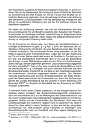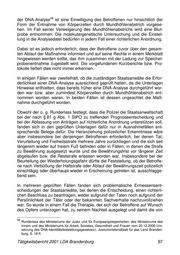 dem Betroffenen ausgehende Wiederholungsgefahr begründet. In einem an- deren Fall hat der Staatsanwalt den Antrag auf einen richterlichen Beschluss zur Durchführung der DNA-Analyse nur mit der Tat als einer Straftat von er- heblicher Bedeutung begründet, ohne die seitherige straffreie Lebensführung des Betroffenen zu berücksichtigen. Hier hat allerdings das Amtsgericht den Antrag mit ausführlicher Würdigung des seit der Tat straffreien Lebens des Betroffenen abgelehnt. Wir haben die Auffassung vertreten, das sich bei Sachverhalten, wie eine lang zurückliegende Tat und Bewährungsstrafe oder Aussetzen der Reststra- fe verbunden mit seitheriger straffreier Lebensführung im Allgemeinen keine Wiederholungsgefahr begründen lässt, sodass die Staatsanwaltschaft keinen Antrag zur retrograden Erfassung stellen sollte. Für die Entnahme von Körperzellen zum Zweck der Identitätsfeststellung in künftigen Strafverfahren ist gem. § 1 g Abs. 3 StPO ein Beschluss des zu- ständigen Amtsgerichts erforderlich, der eine Negativprognose über den Be- troffenen voraussetzt. Der anordnende Richter muss feststellen, ob der Be- troffene aufgrund seiner Persönlichkeit bzw. wegen der Art oder Ausführung der Tat mit hoher Wahrscheinlichkeit erneut als Straftäter in Erscheinung tre- ten wird. Die erforderlichen Erkenntnisse kann er nur aus der Begründung des Antrags zu einer DNA-Analyse sowie aus den Straf- und Vollstreckungs- akten oder ggf. Bewährungsheften gewinnen. Das Bundesverfassungsgericht 59 hat dazu ausgeführt , dass vorher eine zureichende Sachaufklärung durch die Beiziehung der o. g. Unterlagen und durch zeitnahe Auskünfte aus dem Bundeszentralregister erforderlich ist und dass in den Entscheidungsgründen die bedeutsamen Umstände abgewogen werden müssen. Des Weiteren muss die Entscheidung sich auf einen Einzelfall beziehen. Die bloße Wieder- gabe des Gesetzeswortlautes reicht keinesfalls aus. Auch das Verfassungs- gericht des Landes Brandenburg hat die Gerichte in einem Beschluss vom 60 November 2001 zu Sorgfalt und Sensibilität bei der Anordnung von DNA- Analysen aufgefordert. In mehreren Fällen waren Zweifel angebracht, ob die amtsgerichtlichen Be- schlüsse diesen Vorgaben des Bundesverfassungsgerichts entsprachen, denn sie beschränkten sich auf die Wiedergabe des Gesetzeswortlauts und der kurzen Ausführungen des beantragenden Staatsanwaltes zur Art der be- gangenen Straftat und der Persönlichkeit des Betroffenen. Auch wenn der Landesbeauftragte die richterliche Tätigkeit nicht zu überprüfen hat, weist er darauf hin, dass selbst in einem Verfahren, in dem wie bei der retrograden Durchführung von DNA-Analysen große Fallzahlen zu bewältigen sind, Grundrechtseingriffe nicht nur formelhaft und ohne eigene Abwägung be- 59. BVerfG 2 BvR 1741/99 v. 14.12.2000 60 Beschluss v. 15.11.2001 – VfGBbg 49/01, 49/01 EA -, Justizministerialblatt v. 15.1.2002, S. 11f. 98 Tätigkeitsbericht 2001 LDA Brandenburg