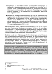 Regelungen zu Passwörtern: Neben grundlegenden Festlegungen zu Passwörtern (wie Länge, Zeichenvorrat, Häufigkeit der Änderung) für IT- Systeme in der Landesverwaltung enthält die Richtlinie Aussagen zur Hinterlegung von Passwörtern für bestimmte Rollenträger und Notfälle sowie zu Verfahren für die Rücksetzung von Passwörtern, falls Nutzer diese vergessen haben. Fernwartung von Benutzerarbeitsplätzen: Im Zuge der Übertragung von Aufgaben auf den Brandenburgischen IT-Dienstleister hat dieser auch die Betreuung von Arbeitsplatz-PCs der Benutzer in den Ressorts über- nommen. In der Richtlinie wird u. a. geregelt, welche Anforderungen an die Fernwartung der PCs durch den Dienstleister zu erfüllen sind, welche Rechte und Pflichten Wartungspersonal sowie Benutzer haben und wie Wartungsvorgänge protokolliert werden. Aktuell befasst sich das IT-Sicherheitsmanagementteam u. a. mit der Erarbei- tung einer Richtlinie zur Mandantentrennung von Verfahren, die beim Bran- denburgischen IT-Dienstleister für die Landesverwaltung betrieben werden, und setzt dabei auch die entsprechende Orientierungshilfe der Konferenz der 36 Datenschutzbeauftragten des Bundes und der Länder um. Zusätzlich wurde eine Arbeitsgruppe für Grundsatzfragen eingerichtet, die sich frühzeitig mit ausgewählten Zukunftsthemen der Informationssicherheit in der Landesverwaltung befassen soll. Zu den ersten Schwerpunkten dieser 37 Arbeitsgruppe gehören z. B. die Einführung von IPv6 sowie des sicheren Namensdienstes DNSsec im Landesverwaltungsnetz oder die sicherheits- technischen Auswirkungen des Trends, private mobile Endgeräte auch für 38 dienstliche Zwecke verwenden zu wollen. Die Abstimmung und Vorbereitung von Entscheidungsgrundlagen in Arbeits- gruppen des IT-Sicherheitsmanagementteams hat sich bewährt. Bereits beschlossene Richtlinien müssen nun zügig durch die Ressorts und den Brandenburgischen IT-Dienstleister umgesetzt werden. Weitere landesweit einheitliche Richtlinien sind unter Berücksichtigung der Themen, die in der Arbeitsgruppe für Grundsatzfragen identifiziert wurden, zu erarbeiten. 36 siehe B 2.1 37 siehe Tätigkeitsbericht 2010/2011, A 3.4 38 siehe A 2 72 Tätigkeitsbericht 2012/2013 LDA Brandenburg