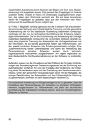 dem sollten die Verwaltungen für das Thema Datenschutz sensibilisiert und die Verantwortlichen auf Defizite hingewiesen werden. Die durchgeführten anlassunabhängigen Kontrollen haben insgesamt einen Fortschritt bei der Berücksichtigung des Datenschutzes gezeigt. Insbesonde- re die Bemühungen in den Kommunalverwaltungen bei der Erstellung von Sicherheitskonzepten – in der Regel nach den Empfehlungen in den Stan- dards und IT-Grundschutzkatalogen des Bundesamtes für Sicherheit in der Informationstechnik – sind zu begrüßen. Es zeigt sich aber auch, dass der erforderliche Aufwand an Ressourcen sowohl in personeller als auch in finan- zieller Hinsicht manche Verwaltung vor große Herausforderungen stellt. Positiv zu bewerten ist, dass gerade bei der Einführung neuer Verfahren zur Verarbeitung personenbezogener Daten die Anforderungen des Brandenbur- gischen Datenschutzgesetzes nun meist konsequenter beachtet werden, insbesondere in Bezug auf die Umsetzung technischer und organisatorischer Maßnahmen, die Freigabe und, falls erforderlich, die Vorabkontrolle. Deren nachträgliche Umsetzung für bereits eingeführte, seit Jahren benutzte Verfah- ren neben dem normalen Tagesgeschäft überfordert jedoch viele Verwaltun- gen. Wir empfehlen in diesen Fällen ein schrittweises Vorgehen: So sind beispielsweise wesentliche Verfahrensänderungen wie System- oder Soft- wareumstellungen geeignete Anlässe, die erforderlichen Dokumente nachzu- arbeiten, Konzepte zu vervollständigen oder noch offene technische und organisatorische Maßnahmen umzusetzen. Auch das Bestreben vieler Verwaltungen, Mitarbeiter für Belange des Daten- schutzes und der Informationssicherheit zu sensibilisieren, sehen wir positiv. Häufig werden Schulungen durch die behördlichen Datenschutzbeauftragten oder durch externe Dienstleister angeboten oder entsprechendes Informati- onsmaterial im Intranet der Verwaltung bereitgestellt. Weiterhin beobachten wir, dass Kommunalverwaltungen sich mittlerweile besser vernetzen sowie Wissen und Erfahrungen zu datenschutzrechtlichen Fragen austauschen. Bei unseren Kontrollen trafen wir jedoch auch auf einzelne Verwaltungen, in denen datenschutzrechtliche Regelungen nur unzureichend Beachtung fin- den oder gar unbekannt sind. In einer Gemeinde wurde weder ein behördli- cher Datenschutzbeauftragter benannt noch gab es eine Dokumentation zum Datenschutz oder zur Informationssicherheit. Dienstanweisungen existierten zwar auf dem Papier, wurden aber bei der täglichen Arbeit nicht umgesetzt und ihre Einhaltung auch nicht kontrolliert. Wir wiesen die Leitung der Verwal- tung auf den Handlungsbedarf hin, konnten jedoch zunächst kein Interesse an der Einhaltung datenschutzrechtlicher Regelungen feststellen. Erst mit unserer nachdrücklichen Aufforderung zur Beachtung der gesetzlichen Rege- lungen änderte sich die Situation. 96 Tätigkeitsbericht 2012/2013 LDA Brandenburg