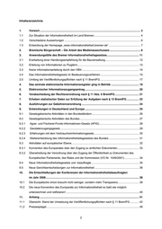 Inhaltsverzeichnis 1. Vorwort ...................................................................................................................................... 3 1.1 Zur Situation der Informationsfreiheit im Land Bremen.............................................................. 4 1.2 Verschiedene Auswertungen ..................................................................................................... 6 1.3 Entwicklung der Homepage „www.informationsfreiheit.bremen.de“ .......................................... 7 2. Bremische Bürgerschaft – Die Arbeit des Medienausschusses ......................................... 8 3. Anwendungsfälle des Bremer Informationsfreiheitsgesetzes........................................... 11 3.1 Erarbeitung einer Handlungsempfehlung für die Bauverwaltung............................................. 12 3.2 Erteilung von Informationen zu Fluglärm.................................................................................. 13 3.3 Keine Informationserteilung durch den VBN ............................................................................ 14 3.4 Das Informationsfreiheitsgesetz im Besteuerungsverfahren.................................................... 15 3.5 Umfang der Veröffentlichungspflichten nach § 11 BremIFG.................................................... 17 4. Das zentrale elektronische Informationsregister ging in Betrieb ..................................... 19 5. Elektronischer Informationszugangsantrag........................................................................ 20 6. Verabschiedung der Rechtsverordnung nach § 11 Abs. 6 BremIFG ................................ 21 7. Erheben statistischer Daten zur Erfüllung der Aufgaben nach § 13 BremIFG ................ 22 8. Ausführungen zur Gebührenverordnung ............................................................................ 24 9. Entwicklungen in Deutschland und Europa ........................................................................ 25 9.1 Gesetzgeberische Aktivitäten in den Bundesländern............................................................... 26 9.2 Gesetzgeberische Aktivitäten des Bundes............................................................................... 27 9.2.1 Agrar- und Fischerei-Fonds-Informationen-Gesetz (AFIG)..................................................... 28 9.2.2 Geodatenzugangsgesetz ........................................................................................................ 29 9.2.3 Erfahrungen mit dem Verbraucherinformationsgesetz............................................................ 30 9.2.4 Weiterentwicklung des Informationsfreiheitsgesetzes des Bundes ........................................ 31 9.3 Aktivitäten auf europäischer Ebene.......................................................................................... 32 9.3.1 Konvention des Europarates über den Zugang zu amtlichen Dokumenten............................. 33 9.3.2 Überarbeitung der Verordnung über den Zugang der Öffentlichkeit zu Dokumenten des Europäischen Parlaments, des Rates und der Kommission (VO Nr. 1049/2001) ................... 34 9.4 Neue Informationsfreiheitsgesetze und -beauftragte ............................................................... 35 9.5 Neue Gerichtsentscheidungen zur Informationsfreiheit ........................................................... 36 10. Die Entschließungen der Konferenzen der Informationsfreiheitsbeauftragten im Jahr 2008............................................................................................................................ 38 10.1 Die Europäische Union braucht nicht weniger, sondern mehr Transparenz............................ 39 10.2 Die neue Konvention des Europarats zur Informationsfreiheit so bald wie möglich unterzeichnen und ratifizieren! ................................................................................................. 40 11. Anhang .................................................................................................................................... 41 11.1 Übersicht: Stand der Umsetzung der Veröffentlichungspflichten nach § 11 BremIFG ............ 42 11.2 Pressespiegel ........................................................................................................................... 49 2