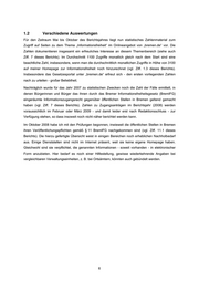 1.2 Verschiedene Auswertungen Für den Zeitraum Mai bis Oktober des Berichtsjahres liegt nun statistisches Zahlenmaterial zum Zugriff auf Seiten zu dem Thema „Informationsfreiheit“ im Onlineangebot von „bremen.de“ vor. Die Zahlen dokumentieren insgesamt ein erfreuliches Interesse an diesem Themenbereich (siehe auch Ziff. 7 dieses Berichts). Im Durchschnitt 1100 Zugriffe monatlich gleich nach dem Start sind eine beachtliche Zahl, insbesondere, wenn man die durchschnittlich monatlichen Zugriffe in Höhe von 3100 auf meiner Homepage zur Informationsfreiheit noch hinzurechnet (vgl. Ziff. 1.3 dieses Berichts). Insbesondere das Gesetzesportal unter „bremen.de“ erfreut sich - den ersten vorliegenden Zahlen nach zu urteilen - großer Beliebtheit. Nachträglich wurde für das Jahr 2007 zu statistischen Zwecken noch die Zahl der Fälle ermittelt, in denen Bürgerinnen und Bürger das ihnen durch das Bremer Informationsfreiheitsgesetz (BremIFG) eingeräumte Informationszugangsrecht gegenüber öffentlichen Stellen in Bremen geltend gemacht haben (vgl. Ziff. 7 dieses Berichts). Zahlen zu Zugangsanträgen im Berichtsjahr (2008) werden voraussichtlich im Februar oder März 2009 - und damit leider erst nach Redaktionsschluss - zur Verfügung stehen, so dass insoweit noch nicht näher berichtet werden kann. Im Oktober 2008 habe ich mit den Prüfungen begonnen, inwieweit die öffentlichen Stellen in Bremen ihren Veröffentlichungspflichten gemäß § 11 BremIFG nachgekommen sind (vgl. Ziff. 11.1 dieses Berichts). Die hierzu gefertigte Übersicht weist in einigen Bereichen noch erheblichen Nachholbedarf aus. Einige Dienststellen sind nicht im Internet präsent, weil sie keine eigene Homepage haben. Gleichwohl sind sie verpflichtet, die genannten Informationen - soweit vorhanden - in elektronischer Form anzubieten. Hier bedarf es noch einer Hilfestellung, gewisse wiederkehrende Angaben bei vergleichbaren Verwaltungseinheiten, z. B. bei Ortsämtern, könnten auch gebündelt werden. 6