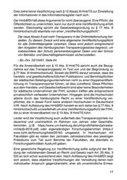 Dies ziehe keine Verpflichtung nach § 10 Absatz 8 HmbTG zur Einstellung der Informationen in das Informationsregister nach sich. Der HmbBfDI hält diese Argumente für nicht überzeugend. Eine Pflicht, die Öffentlichkeit zu unterrichten, kann nur durch eine Veröffentlichung erfüllt werden. Gleichzeitig spricht die Gesetzesbegründung zu § 77 Abs. 8 HmbHochschulG ebenfalls von einer „Veröffentlichungspflicht“: Der neue Absatz 8 soll mehr Transparenz in der Drittmittelforschung her- stellen. Zu diesem Zweck wird eine allgemeine Veröffentlichungspflicht für alle Drittmittelprojekte verankert. Diese wird jedoch entsprechend den Vorgaben des Hamburgischen Transparenzgesetzes begrenzt, um insbesondere den Schutz personenbezogener Daten und den Schutz von Betriebs- und Geschäftsgeheimnissen sicherzustellen. - Bü.-Drs. 20/10491, Seite 64. Für die Anwendbarkeit von § 10 Abs. 8 HmbTG spricht auch die Bezug- nahme auf das Transparenzgesetz im Text von und der Begründung zu § 77 Abs. 8 HmbHochschulG. Soweit die BWFG darauf verweist, dass die handels- und gesellschaftsrechtlichen Publikations- und Berichtspflichten der städtischen Beteiligungsunternehmen nicht zu einer Doppelveröffent- lichung im Transparenzportal führen, ist dies zutreffend. Diese Pflichten aus dem Handels- und Gesellschaftsrecht sind aber keine Besonderheiten für städtische Unternehmen der FHH, sondern treffen alle entsprechend privatrechtlich verfassten Unternehmen. Hingegen sind die Hochschulen alleine durch das hamburgische Recht zu einer Veröffentlichung ver- pflichtet, die in dieser Form keine anderen Hochschulen in Deutschland trifft. Nach Auffassung des HmbBfDI handelt es sich daher bei § 77 Abs. 8 HmbHochschulG unzweifelhaft um eine Veröffentlichungspflicht der FHH, die zu einer Anwendbarkeit von § 10 Abs. 8 HmbTG führt. Leider wird die Verpflichtung auch außerhalb des Transparenzportals nur dezentral und uneinheitlich im Rahmen von Jahres- oder Geschäfts- berichten (z.B. https://www.uni-hamburg.de/uhh/profil/fakten/jahresbe- richte/jb-2016.pdf) oder eigenständigen Forschungsberichten (https:// www.tuhh.de/forschung/fobe/2016/) umgesetzt. In Hochschulen mit Fakultäten gibt es neben den zentralen Jahresberichten des jeweiligen Präsidiums zum Teil auch Berichte der Fakultäten, die ebenfalls zu Forschungsaktivitäten Auskunft geben. Eine gesetzliche Regelung zur Veröffentlichung sollte aufgrund der Bin- dung der vollziehenden Gewalt an Recht und Gesetz nach Art. 20 Abs. 3 GG an sich schon ausreichend sein. Nach Auffassung des HmbBfDI zeigt sich jedoch, dass objektive Verpflichtungen der Verwaltung denen kein individueller Anspruch gegenübersteht, eher als unverbindliche Ermes- 17