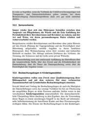 Soziales Es wäre zu begrüßen, wenn die Verbände der Unfallversicherungsträger sich Transparenz- und Datenschutzleitlinien geben würden, bei deren Berücksichtigung Datenschutzprobleme dann erst gar nicht entstehen dürften. 10.5 Seniorenheime Immer wieder lässt sich eine Diskrepanz feststellen zwischen dem Anspruch von Pflegeheimen, die Würde und die freie Entfaltung der Persönlichkeit ihrer Bewohnerinnen und Bewohner zu wahren, und der Art und Weise, wie deren personenbezogene Daten erhoben und weiterverarbeitet werden. Beispielsweise wurden Bewohnerinnen und Bewohner ohne jeden Hinweis auf den Zweck (Planung der Tagesgestaltung) und die Freiwilligkeit einer Mitwirkung aufgefordert, sensible Angaben zu ihrem familiären Hintergrund, ihrer Weltanschauung sowie ihrer sozialen und kulturellen Herkunft zu machen. Die Abfrage umfasste Erlebnisse des Verlustes, der Trennung, des Schmerzes und der Liebe sowie private Wünsche. Jede Datenerhebung setzt eine umfassende Aufklärung der Betroffenen über die verantwortliche Stelle, über den Zweck und die Erforderlichkeit der Datenerhebung, über die Dauer der Datenspeicherung sowie über die Freiwilligkeit der Angaben voraus. 10.6 Beobachtungsbogen in Kindertagesstätten Kindertagesstätten wollen zum Zweck einer Qualitätssteigerung ihrer Bildungsarbeit und mit dem weiteren Ziel einer verbesserten Zusammenarbeit mit Grundschulen Beobachtungsbogen einsetzen. Sowohl Inhalt und Umfang der Beobachtungsbogen als auch die Häufigkeit der Datenerhebungen sowie das sonstige Verfahren bis hin zur Überlassung der ausgefüllten Bogen an dritte Personen und/oder Stellen waren in den verschiedenen Kindertagesstätten unterschiedlich. Die datenschutzrecht- liche Überprüfung führte durchweg zu dem Ergebnis, dass die Verwendung dieser Bogen zu einem unzulässigen Eingriff in das Recht auf informatio- nelle Selbstbestimmung der betroffenen Kinder und ihrer Personensorgebe- rechtigten führte. Der Einsatz der Beobachtungsbogen in den Kindertages- LDI NRW 17. Datenschutzbericht 2005 107