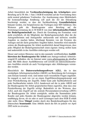 Soziales Arbeit hinsichtlich der Verdienstbescheinigung des Arbeitgebers unter Berufung auf § 58 Abs. 1 Satz 2 SGB II weiterhin auf der Verwendung ihres nicht neutral gehaltenen Vordruckes. Zur Anerkennung eines Mehrbedarfs für kostenaufwändige Ernährung soll auch die Art der Erkrankung bescheinigt werden, so dass der Sachbearbeitung Gesundheitsdaten bekannt werden, wie beispielsweise das Vorliegen einer HIV-Infektion. Des Weiteren geht die Bundesagentur unter Berufung auf die Vertretungsvermutung des § 38 SGB II von einer informationellen Einheit der Bedarfsgemeinschaft aus. Durch die Gestaltung der Formulare wird nicht ersichtlich, ob die Mitglieder der Bedarfsgemeinschaft, über die die Antragstellerinnen und Antragsteller umfassende und teilweise sensible Angaben zu machen haben, überhaupt Kenntnis von der Existenz des Antrages und der darin gemachten Angaben haben. Immerhin wird nunmehr seitens der Bundesagentur für Arbeit ausdrücklich darauf hingewiesen, dass jedes Mitglied der Bedarfsgemeinschaft einen eigenen Antrag stellen kann und anderenfalls in das Ausfüllen einbezogen werden soll. Dieser und weitere Hinweise sind in den nunmehr veröffentlichten Ausfüll- hinweisen der Bundesagentur für Arbeit zum Antragsvordruck Arbeitslo- sengeld II enthalten, die im Internet unter www.arbeitsagentur.de abrufbar sind. Mit Hilfe dieser Ausfüllhinweise soll sowohl ein datenschutzkonfor- mes Ausfüllen erreicht als auch Verzögerungen oder Ablehnungen vermie- den werden. Hinsichtlich der Datenverarbeitungssoftware A2LL, die in den zuständigen Arbeitsgemeinschaften (ARGE) zur Berechnung der Leistungen zum Einsatz kommen wird, sind immer noch wesentliche Fragen ungeklärt. So mangelt es nach wie vor an einem Zugriffsberechtigungskonzept und einer Protokollierung der Zugriffe. Daher kann jede Sachbearbeiterin und jeder Sachbearbeiter mittels A2LL bundesweit auf die in jeder ARGE und der Bundesagentur für Arbeit gespeicherten Daten zugreifen, ohne dass eine Protokollierung der Zugriffe erfolgt. Bedenklich ist des Weiteren, dass A2LL auch den Zugriff auf die zentrale Personendatenverwaltung (zPDV) der Bundesagentur für Arbeit ermöglicht, mithin die Stammdaten jeder Kundin und jedes Kunden der Bundesagentur abgerufen werden können, unabhängig davon, ob sie oder er auch Leistungen nach dem SGB II erhält oder nicht. Diese Mängel wurden durch den Bundesbeauftragten für den Datenschutz beanstandet. Eine Abhilfe durch die BA ist jedoch vor April 2005 nicht zu erwarten. 110 LDI NRW 17. Datenschutzbericht 2005