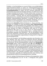 Justiz Verhältnis zu den Beschäftigten als insoweit Dritten zum geschäftsmäßigen Telekommunikationsanbieter im Sinne des Telekommunikationsgesetzes (TKG) und hat entsprechend den Bestimmungen des TKG den Schutz des Fernmeldegeheimnisses zu wahren. Die hier vertretene Auffassung, dass grundsätzlich nicht einmal der Dienstherr Kenntnis vom Inhalt und von den sonstigen Umständen der privaten Telefonate nehmen darf, zu denen eben auch die Verbindungsdaten gehören, ist in Literatur und Rechtsprechung – soweit ersichtlich – unstreitig. Will eine Strafverfolgungsbehörde Verbin- dungsdaten der dem grundrechtlich geschützten Fernmeldegeheimnis unter- liegenden Telekommunikation bekommen, so benötigt sie dafür nach der Strafprozessordnung grundsätzlich eine richterliche Anordnung. Um so er- staunlicher war das ursprüngliche Ansinnen der Staatsanwaltschaft. Im Bereich der dienstlich geführten Telefonate ist – ebenso unstreitig – der Dienstherr im Verhältnis zu seinen Beschäftigten kein Telekommunikati- onsanbieter, weil die Beschäftigten ihm gegenüber keine Dritten im Sinne des TKG sind (zu den insoweit vergleichbaren Fragen von dienstlicher und privater Nutzung von E-Mail am Arbeitsplatz siehe schon im 15. Daten- schutzbericht 2001 unter 2.1.4.1, S. 20 f. und im 16. Datenschutzbericht 2003 unter 9.1, S. 99 ff.). Im Dienstverhältnis gibt es – allerdings allein und ausschließlich gegenüber dem Dienstherrn – für die Beschäftigten keinen Schutz ihrer dienstlichen Telefonate durch das Fernmeldegeheimnis, wohl aber in einem demgegenüber eingeschränkten Umfang durch ihr Allgemei- nes Persönlichkeitsrecht. Was aus der Perspektive der Beschäftigten gegenüber dem Dienstherrn gilt, kann allerdings nicht ohne weiteres auf diejenigen Personen übertragen werden, die am anderen Ende der Leitung mit einer oder einem Beschäftig- ten telefonieren. Da das Fernmeldegeheimnis sachlich einen Kommunika- tionsvorgang schützt, schützt es personell somit alle daran Beteiligten. In der Literatur wird daher mit beachtlichen Argumenten darum gestritten, ob Dienstgespräche nicht auch generell gegenüber dem Dienstherrn grundsätz- lich den Schutz des Fernmeldegeheimnisses genießen. Die Stimmen, die dies befürworten, mehren sich. Doch diese Auseinandersetzung kann hier vernachlässigt werden, denn es wird in Literatur und Rechtsprechung nicht ernsthaft bestritten, dass jedenfalls gegenüber anderen staatlichen Stellen und insbesondere gegenüber der Staatsanwaltschaft jedes Telefonat dem grundrechtlichen Schutz des Fernmeldegeheimnisses unterfällt. Nach der ständigen Rechtsprechung des Bundesverfassungsgerichts schützt das Fernmeldegeheimnis aus Art. 10 Abs. 1 Grundgesetz (GG) jegliche LDI NRW 17. Datenschutzbericht 2005 89