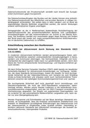 Anhang Datenschutzkontrolle der Privatwirtschaft verstößt nach Ansicht der Europäi- schen Kommission gegen Europarecht. Die Datenschutzbeauftragten des Bundes und der Länder können eine einheitli- che Datenschutzkontrolle des öffentlichen und privaten Bereichs in völliger Un- abhängigkeit sicherstellen. Sie sollten dazu in allen Ländern und im Bund als eigenständige Oberste Behörden eingerichtet werden, die keinen Weisungen anderer administrativer Organe unterliegen. Demgegenüber ist die in Niedersachsen beabsichtigte Rückübertragung der Datenschutzkontrolle des privatwirtschaftlichen Bereichs vom Landesdaten- schutzbeauftragten auf das Innenministerium ein Schritt in die falsche Rich- tung. Die Konferenz wendet sich entschieden gegen diese Planung und fordert den Bund sowie alle Länder auf, zügig europarechtskonforme Aufsichtsstruktu- ren im deutschen Datenschutz zu schaffen. Entschließung zwischen den Konferenzen Sicherheit bei eGovernment durch Nutzung des Standards OSCI (15.12.2005) In modernen eGovernment-Verfahren werden personenbezogene Daten zahl- reicher Fachverfahren zwischen unterschiedlichen Verwaltungsträgern in Bund, Ländern und Kommunen übertragen. Die Vertraulichkeit, Integrität und Zure- chenbarkeit der übertragenen Daten kann nur gewährleistet werden, wenn dem Stand der Technik entsprechende Verschlüsselungs- und Signaturverfahren ge- nutzt werden. Mit dem Online Services Computer Interface (OSCI) steht bereits ein bewährter Sicherheits-Standard für eGovernment-Anwendungen zur Verfügung. Verfah- ren, die diese Standards berücksichtigen, bieten die Gewähr für eine durchge- hende Sicherheit bei der Datenübermittlung vom Versand bis zum Empfang (Ende-zu-Ende-Sicherheit) und erlauben somit auch rechtsverbindliche Trans- aktionen zwischen den beteiligten Kommunikationspartnerinnen und -partner. Die durchgehende Sicherheit darf nicht dauerhaft durch Vermittlungs- und Übersetzungsdienste, die nicht der OSCI-Spezifikation entsprechen, beein- trächtigt werden. Werden solche Dienste zusätzlich in die behördlichen Kom- munikationsströme eingeschaltet, wird das mit OSCI-Transport erreichbare Si- cherheitsniveau abgesenkt. Der Einsatz von sogenannten Clearingstellen, wie sie zunächst für das automatisierte Meldeverfahren vorgesehen sind, kann da- her nur eine Übergangslösung sein. Werden Programme und Schnittstellen auf der Basis derartiger Standards ent- wickelt, ist sichergestellt, dass die Produkte verschiedener Anbieterinnen und Anbieter im Wettbewerb grundlegende Anforderungen des Datenschutzes und der Datensicherheit in vergleichbar hoher Qualität erfüllen. Gleichzeitig er- leichtern definierte Standards den öffentlichen Verwaltungen die Auswahl da- tenschutzkonformer, interoperabler Produkte. 174 LDI NRW 18. Datenschutzbericht 2007