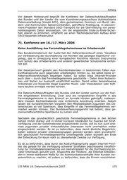 Anhang Vor diesem Hintergrund begrüßt die Konferenz der Datenschutzbeauftragten des Bundes und der Länder die vom Koordinierungsausschuss Automatisierte Datenverarbeitung (KoopA ADV), dem gemeinsamen Gremium von Bund, Län- dern und Kommunalen Spitzenverbänden, getroffene Festlegung, in eGovern- ment-Projekten den Standard OSCI-Transport für die Übermittlung von perso- nenbezogenen Daten einzusetzen. Um die angestrebte Ende-zu-Ende-Sicher- heit überall zu erreichen, empfiehlt sie einen flächendeckenden Aufbau einer OSCI-basierten Infrastruktur. 71. Konferenz am 16./17. März 2006 Keine Aushöhlung des Fernmeldegeheimnisses im Urheberrecht Das Bundesministerium der Justiz hat den Referentenentwurf eines "Gesetzes zur Verbesserung der Durchsetzung von Rechten des geistigen Eigentums" vor- gelegt, das in Umsetzung einer europäischen Richtlinie stärkere Instrumente zum Schutz des Urheberrechts und anderer gewerblicher Schutzrechte einfüh- ren soll. Der Gesetzentwurf gesteht den Rechteinhabenden in bestimmten Fällen Aus- kunftsansprüche auch gegenüber unbeteiligten Dritten zu, die selbst keine Ur- heberrechtsverletzungen begangen haben. So sollen etwa Internet-Provider auch über – durch das Fernmeldegeheimnis geschützte – Daten ihrer Nutzerin- nen und Nutzer zur Auskunft verpflichtet werden. Damit sollen beispielsweise Anbietende und Nutzende illegal kopierter Musik- oder Videodateien oder Soft- ware leichter ermittelt werden können. Die Datenschutzbeauftragten des Bundes und der Länder warnen vor der hier- mit eingeleiteten Entwicklung. Zwar sind die vorgesehenen Eingriffe in das Fernmeldegeheimnis in dem Entwurf an formale Hürden geknüpft; insbeson- dere müssen Rechteinhabende eine richterliche Anordnung erwirken. Jedoch lassen die europarechtlichen Vorgaben den Mitgliedstaaten zugunsten des Da- tenschutzes so viel Spielraum, dass Eingriffe in das Fernmeldegeheimnis ver- mieden werden können. Das Bundesverfassungsgericht hat betont, dass ge- meinschaftsrechtliche Spielräume zu nutzen sind. Nachdem das grundrechtlich geschützte Fernmeldegeheimnis in den letzten Jahren immer stärker und in immer kürzeren Abständen für Zwecke der Straf- verfolgung und der Geheimdienste eingeschränkt wurde, soll es nun auch erst- mals zugunsten privater wirtschaftlicher Interessen nicht unerheblich weiter eingeschränkt werden. Es ist zu befürchten, dass damit ähnliche Begehrlich- keiten weiterer privater Interessengruppen geweckt werden. Dem grundrecht- lich geschützten Fernmeldegeheimnis unterliegende Daten stünden am Ende der Entwicklung für kaum noch zu übersehende Zwecke zur Verfügung. Es ist zu befürchten, dass durch die Auskunftsansprüche gegen Internet-Provi- der die gerade für die Verfolgung schwerer Straftaten beschlossene Verpflich- tung zur Vorratsdatenspeicherung von Verkehrsdaten für die Durchsetzung pri- vater Interessen genutzt wird. Angesichts der Tendenz, die Internet-Anbieten- den in immer stärkerem Maße für die Kommunikationsinhalte ihrer Kunden ver- antwortlich zu machen, ist zudem zu befürchten, dass die Firmen vorsichtshal- LDI NRW 18. Datenschutzbericht 2007 175