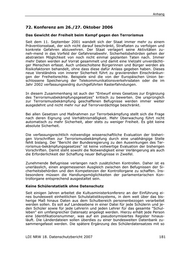 Anhang 72. Konferenz am 26./27. Oktober 2006 Das Gewicht der Freiheit beim Kampf gegen den Terrorismus Seit dem 11. September 2001 wandelt sich der Staat immer mehr zu einem Präventionsstaat, der sich nicht darauf beschränkt, Straftaten zu verfolgen und konkrete Gefahren abzuwehren. Der Staat verlagert seine Aktivitäten zu- neh-mend in das Vorfeld der Gefahrenabwehr. Sicherheitsbehörden gehen der abstrakten Möglichkeit von noch nicht einmal geplanten Taten nach. Immer mehr Daten werden auf Vorrat gesammelt und damit eine Vielzahl unverdächti- ger Menschen erfasst. Auch unbescholtene Bürgerinnen und Bürger werden als Risikofaktoren behandelt, ohne dass diese dafür Anlass gegeben haben. Dieses neue Verständnis von innerer Sicherheit führt zu gravierenden Einschränkun- gen der Freiheitsrechte. Beispiele sind die von der Europäischen Union be- schlossene Speicherung der Telekommunikationsverkehrsdaten oder die im Jahr 2002 verfassungswidrig durchgeführten Rasterfahndungen. In diesem Zusammenhang ist auch der "Entwurf eines Gesetzes zur Ergänzung des Terrorismusbekämpfungsgesetzes" kritisch zu bewerten. Die ursprünglich zur Terrorismusbekämpfung geschaffenen Befugnisse werden immer weiter ausgedehnt und nicht mehr nur auf Terrorverdächtige beschränkt. Bei allen Gesetzen und Maßnahmen zur Terrorbekämpfung stellt sich die Frage nach deren Eignung und Verhältnismäßigkeit. Mehr Überwachung führt nicht automatisch zu mehr Sicherheit, aber stets zu weniger Freiheit. Es gibt keine absolute Sicherheit. Die verfassungsrechtlich notwendige wissenschaftliche Evaluation der bisheri- gen Vorschriften zur Terrorismusbekämpfung durch eine unabhängige Stelle fehlt bislang. Der "Bericht der Bundesregierung zu den Auswirkungen des Ter- rorismus-bekämpfungsgesetzes" ist keine vollwertige Evaluation der bisherigen Vorschriften. Damit steht sowohl die Notwendigkeit einer Verlängerung als auch die Erforderlichkeit der Schaffung neuer Befugnisse in Zweifel. Zunehmende Befugnisse verlangen nach zusätzlichen Kontrollen. Daher ist es unerlässlich, einen angemessenen Ausgleich zwischen den Befugnissen der Si- cherheitsbehörden und den Kompetenzen der Kontrollorgane zu schaffen. Ins- besondere müssen die Handlungsmöglichkeiten der parlamentarischen Kon- trollorgane entsprechend ausgestaltet sein. Keine Schülerstatistik ohne Datenschutz Seit einigen Jahren arbeitet die Kultusministerkonferenz an der Einführung ei- nes bundesweit einheitlichen Schulstatistiksystems, in dem weit über das bis- herige Maß hinaus Daten aus dem Schulbereich personenbezogen verarbeitet werden sollen. Es soll auf Landesebene in einer Datei für jede Schülerin und je- den Schüler sowie für jede Lehrerin und jeden Lehrer für das gesamte "Schul- leben" ein umfangreicher Datensatz angelegt werden. Hierzu erhält jede Person eine Identifikationsnummer, was auf ein pseudonymisiertes Register hinaus- läuft. Die Länderdateien sollen überdies zu einer bundesweiten Datenbank zu- sammengefasst werden. Die spätere Ergänzung des Schülerdatensatzes mit so LDI NRW 18. Datenschutzbericht 2007 181