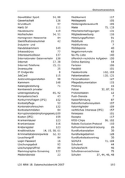Stichwortverzeichnis Gewalttäter Sport 54, 88 Medikament 117 Gewerkschaft 126 Meldegesetz 105 Grundbuch 97 Melderegisterauskunft 105 Hartz IV 111 Miete 75, 133 Hausbesuche 119 Mitarbeiterbefragungen 131 Hochschulen 34, 51 Mitgliederwerbung 116 Homegrown–Netzwerke 84 Mitteilungspflichten 91 Identifikationsnummer 42 Mobilfunk 21 Industrie- und Mobilfunknetz 7 Handelskammern 149 Mülldeponie 40 Inkassobüros 77 Negativmerkmale 65 Interessenkollision 137 No-Fly-Liste 140 Internationaler Datenverkehr 138 öffentlich-rechtliche Aufgaben 150 Internet 27, 28 Online-Banking 14 Internet-Telefonie 15, 21 Parteien 106 Inverssuche 25 Passbild 101 IT-Endgeräte 8 Passkontrolle 102, 103 JobCard 115 Patientenakten 120, 121 Justizvollzugsanstalten 98 Personalkosten 127 Kammern 148 Pflegedokumentation 115 Katalogbestellung 71 Phishing 15 Kernbereich privater Polizei 32, 87, 91 Lebensgestaltung 85, 92 Protokolldaten 12 Kompetenzcheck 43 Push-Dienste 7 Konkurrenzfragen (IFG) 152 Rasterfahndung 87 Kontaktpflege 52 Ratsinformationssystem 107 Kontenabrufersuchen 132 Ratsmitglieder 109 Kontostammdaten 84 rechtliches Interesse (IFG) 157 Korruptionsbekämpfungsgesetz 109 Reisepass 101 Kosten (IFG) 159 Rezepte 117 Krankenhäuser 123 RFID-Chips 56, 102 Krankenkasse 116 Robots Exclusion Protocol 110 Krebsregister 123 Rufnummernunterdrückung 26 Kreditinstitute 14, 15, 58, 61 Rundfunkanstalten 30 Kriminalitätsbrennpunkte 32, 33 Rundfunkgebühren 128 Lauschangriff 84 Rundfunkstaatsvertrag 30 Login-Passwort 16 SCHUFA 71, 104 Löschungsgebot 92 Schulamt 44 Löschungsprüffrist 89 Schulaufsicht 46 Mammographie-Screening 122 Schuldnerverzeichnisse 75 Mediendienste 23 Schulen 37, 44, 46, 48 LDI NRW 18. Datenschutzbericht 2007 193