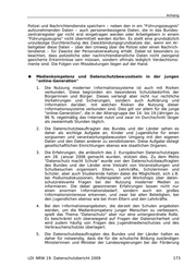 Anhang Polizei und Nachrichtendienste speichern – neben den in ein "Führungszeugnis" aufzunehmenden Daten – auch personenbezogene Daten, die in das Bundes- zentralregister gar nicht erst eingetragen werden oder Arbeitgebern in einem "Führungszeugnis" nicht übermittelt werden dürfen. Es stellt eine grundsätzlich unzulässige Durchbrechung des Zweckbindungsgrundsatzes dar, wenn ein Ar- beitgeber diese Daten – über den Umweg über die Polizei oder einen Nachrich- tendienst – für Zwecke der Personalverwaltung erhält. Dabei ist besonders zu beachten, dass polizeiliche oder nachrichtendienstliche Daten nicht zwingend gesicherte Erkenntnisse sein müssen, sondern oftmals lediglich Verdachtsmo- mente sind. Die Folgen von Missdeutungen liegen auf der Hand. Medienkompetenz und Datenschutzbewusstsein in der jungen "online-Generation" 1. Die Nutzung moderner Informationssysteme ist auch mit Risiken verbunden. Diese begründen ein besonderes Schutzbedürfnis der Bürgerinnen und Bürger. Dieses verlangt aber nicht nur rechtliche Vorkehrungen und Sicherungen, sondern auch Aufklärung und Information darüber, mit welchen Risiken die Nutzung dieser Informationssysteme verbunden sind. Dies gilt vor allem für die junge "online-Generation", die in der Altersgruppe der 14- bis 19-Jährigen zu 96 % regelmäßig das Internet nutzt und zwar im Durchschnitt länger als zweieinhalb Stunden täglich. 2. Die Datenschutzbeauftragten des Bundes und der Länder sehen es daher als wichtige Aufgabe an, Kinder und Jugendliche für einen sorgsamen und verantwortungsbewussten Umgang mit den eigenen Daten und den Daten anderer zu sensibilisieren. Diese Aufgabe obliegt gesellschaftlichen Einrichtungen ebenso wie staatlichen Organen. 3. Die Erfahrungen, die anlässlich des 2. Europäischen Datenschutztages am 28. Januar 2008 gemacht wurden, stützen dies. Zu dem Motto "Datenschutz macht Schule" wurde von den Datenschutzbeauftragten des Bundes und der Länder eine Vielzahl von Veranstaltungen und Schulbesuchen organisiert. Eltern, Lehrkräfte, Schülerinnen und Schüler, aber auch Studierende hatten dabei die Möglichkeit, sich z.B. bei Podiumsdiskussionen, Rollenspielen und Workshops über daten- schutzrelevante Fragen bei der Nutzung moderner Medien zu informieren. Die dabei gewonnenen Erfahrungen lassen nicht nur einen enormen Informationsbedarf, sondern auch ein großes Informationsinteresse erkennen, und zwar bei allen Beteiligten, bei den Jugendlichen ebenso wie bei ihren Eltern und den Lehrkräfte. 4. Bei den Informationsangeboten, die derzeit den Schulen angeboten werden, um die Medienkompetenz junger Menschen zu verbessern, spielt das Thema "Datenschutz" aber nur eine untergeordnete Rolle. Es beschränkt sich überwiegend auf Fragen der Datensicherheit und wird zudem häufig von Fragen des Jugendmedienschutzes und des Verbraucherschutzes überlagert. 5. Die Datenschutzbeauftragten des Bundes und der Länder halten es daher für notwendig, dass die für die schulische Bildung zuständigen Ministerinnen und Minister der Landesregierungen bei der Förderung LDI NRW 19. Datenschutzbericht 2009 173
