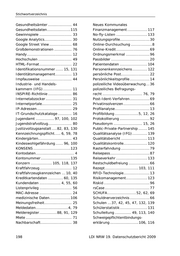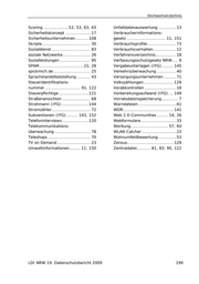 Stichwortverzeichnis Scoring .................. 52, 53, 63, 65 Unfalldatenauswertung .............13 Sicherheitskonzept .................. 17 Verbraucherinformations- Sicherheitsunternehmen..........108 gesetz ............................ 11, 151 Skripte ................................... 30 Verbrauchsprofile .....................73 Sozialdienst ............................ 83 Verbrauchsverhalten.................12 soziale Netzwerke.................... 26 Verfahrensverzeichnis...............18 Sozialleistungen ...................... 95 Verfassungsschutzgesetz NRW.... 9 SPAM ................................ 21, 28 Vergabeunterlagen (IFG)......... 145 spickmich.de........................... 25 Verkehrsüberwachung ..............40 Sprachstandsfeststellung .......... 43 Versorgungsunternehmen .........71 Steueridentifikations- Volkszählungen...................... 129 nummer .......................... 91, 122 Vorabkontrollen .......................18 Steuerpflichtige ......................121 Vorbereitungsaufwand (IFG).... 149 Straßenansichten .................... 68 Vorratsdatenspeicherung............ 7 Strohmann (IFG) ....................144 Warndateien ............................61 Stromzähler............................ 72 WDR..................................... 141 Subventionen (IFG) ........ 143, 152 Web 2.0-Communities ........ 14, 26 Telefoninterviews ...................120 Webformulare..........................33 Telekommunikations- Werbung ........................... 57, 60 überwachung .......................... 78 WLAN-Catcher .........................23 Teleshops ............................... 70 Wohnumfeldbewertung .............53 TV on Demand ........................ 23 Zensus.................................. 129 Umweltinformationen ........ 11, 150 Zentraldatei.......... 81, 83, 95, 122 LDI NRW 19. Datenschutzbericht 2009 199