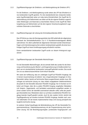 3.3.3 Zugriffsberechtigungen der Direktions- und Abteilungsleitung der Direktion LPP 2 Für die Direktions- und Abteilungsleitung wurde seitens des LPP das Erfordernis ei- nes landesweiten Zugriffs gesehen. Für eine standardisierte bzw. temporäre landes- weite Zugriffsmöglichkeit sahen wir indes keine Erforderlichkeit. Der Zugriff der Di- rektionsleitung (und Stellvertreter) war daher auf die der eigenen Direktion zugeord- neten Abteilungen und Dezernate zu beschränken. Ebenso ist der Zugriff der Abtei- lungsleitung (und Stellvertreter) auf die dem eigenen Verantwortungsbereich zuge- ordneten Dezernate zu beschränken. 3.3.4 Zugriffsberechtigungen der Leitung des Kriminaldauerdienstes (KDD) Das LPP führte aus, dass die Dienstgruppenleiter des KDD außerhalb der allgemeinen Dienstzeit die Zentralstellenfunktion i.S.d. § 13 Bundeskriminalamtgesetz (BKAG) wahrnehmen. Vor allem außerhalb der allgemeinen Dienstzeit würden Erkenntnisan- fragen und Unterstützungsersuchen anderer Länderpolizeien gestellt, die einen kurz- fristigen Zugriff auf einen Ermittlungsvorgang erforderlich machten. Einem standardisierten landesweiten Zugriff wurde vor diesem Hintergrund zuge- stimmt. 3.3.5 Zugriffsberechtigungen der Dienststelle Alkohol/Drogen Für die Dienststelle Alkohol/Drogen, die als zentrale Stelle des Landes für die Erken- nung und Koordinierung der Alkohol- und Drogenerkennung im Straßenverkehr fun- giert, war ein standardisierter landesweiter Lesezugriff gefordert worden. Dies wurde von uns aus datenschutzrechtlicher Sicht kritisch bewertet. Wir waren der Auffassung, dass ein unbefugter Zugriff auf POLADIS-Vorgänge, die in keinem Zusammenhang mit alkohol- bzw. drogenrelevanten Vorgängen im Stra- ßenverkehr stehen, bereits auf technischer Ebene ausgeschlossen werden muss. Wir schlugen als technische Lösung vor, dass mittels vorgegebener Selektionskriterien die jeweils für die Dienstelle relevanten POLADIS-Vorgänge, hier im Kontext von Al- kohol und Drogen, über die zu jedem POLADIS-Vorgang vorgehalten Metadaten (z.B. Ereignis-, Gegenstands- und Sachdaten) automatisiert ausgefiltert werden. In einem zweiten Schritt, der ebenfalls automatisiert ablaufen sollte, sollte den jeweili- gen Dienststellen bzw. Mitarbeitern dann nur auf diese vorselektierten POLADIS-Vor- gänge lesender Zugriff gewährt werden. Auch für den zweiten Schritt, nämlich die Zugriffsgewährung auf einzelne konkrete POLADIS-Vorgänge, bestehe nach unse- rem Dafürhalten mit der bereits implementierten Deep-Link-Lösung prinzipiell eine taugliche technische Lösung. Im weiteren Verlauf beauftragte die Behördenleitung des LPP die Dienststelle Pro- grammentwicklung / Datenbankauswertung mit der Programmierung einer techni- schen Lösung. Von der Berechtigungsvergabe „Landesweite Vorgangssuche“ und 46 Unabhängiges Datenschutzzentrum Saarland, 26. Tätigkeitsbericht