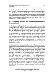 3. Tätigkeitsbericht zur Informationsfreiheit 243 2017/2018 (6) Die Aufgabe des Landesbeauftragten für die Informationsfreiheit wird von dem Landesbeauftragten für den Datenschutz wahrgenom- men. Der Landesbeauftragte für den Datenschutz kann sich im Rah- men seiner Tätigkeit als Landesbeauftragter für den Datenschutz auf seine institutionelle Garantie nach Artikel 69 der Verfassung des Frei- staats Thüringen und seine Unabhängigkeit nach Artikel 52 der Ver- ordnung (EU) 2016/679 berufen. § 19 Aufgaben und Befugnisse des Landesbeauftragten für die In- formationsfreiheit (1) Der Landesbeauftragte für die Informationsfreiheit informiert die Öffentlichkeit über Fragen im Zusammenhang mit diesem Gesetz und dem Thüringer Umweltinformationsgesetz. Er überwacht die Einhal- tung der Bestimmungen dieser Gesetze bei den in § 2 Abs. 1 genann- ten Stellen; er berät die öffentlichen Stellen und kann Empfehlungen zur Verbesserung des Informationszugangs geben. Er unterstützt den Landtag bei seinen Entscheidungen. Auf Anforderung des Landtags oder der Landesregierung hat er Gutachten zu erstellen und Bericht zu erstatten. Der Landtag oder die Landesregierung können ihn ersuchen, bestimmte Vorgänge aus ihrem Aufgabenbereich zu überprüfen. Der Landesbeauftragte für die Informationsfreiheit kann sich jederzeit an den Landtag wenden. (2) Die in § 2 Abs. 1 genannten Stellen sind verpflichtet, den Landes- beauftragten für die Informationsfreiheit und seine Beauftragten in der Erfüllung ihrer Aufgaben zu unterstützen. Dem Landesbeauftragten für die Informationsfreiheit ist dabei insbesondere Auskunft zu seinen Fragen zu erteilen. Ihm ist darüber hinaus Einsicht in alle Unterlagen und Akten zu verschaffen, die im Zusammenhang mit dem Informati- onsanliegen stehen, und Zutritt zu den Diensträumen zu gewähren, so- weit nicht Gründe nach § 99 Abs. 1 Satz 2 VwGO dem entgegenste- hen. Hierbei ist die besondere Rechtsstellung des Landesbeauftragten für die Informationsfreiheit zu berücksichtigen. Stellt der Landesbe- auftragte für die Informationsfreiheit Verstöße der in § 2 Abs. 1 ge- nannten Stellen gegen dieses Gesetz oder das Thüringer Umweltinfor- mationsgesetz fest, kann er ihre Behebung in angemessener Frist for- dern. Über die Beanstandung ist die zuständige Aufsichtsbehörde zu unterrichten. Thüringer Landesbeauftragter für den Datenschutz und die Informationsfreiheit