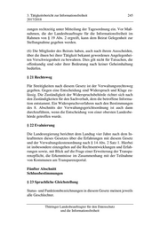 3. Tätigkeitsbericht zur Informationsfreiheit 245 2017/2018 zungen rechtzeitig unter Mitteilung der Tagesordnung ein. Vor Maß- nahmen, die der Landesbeauftragte für die Informationsfreiheit im Rahmen von § 19 Abs. 2 ergreift, kann dem Beirat Gelegenheit zur Stellungnahme gegeben werden. (6) Die Mitglieder des Beirats haben, auch nach ihrem Ausscheiden, über die ihnen bei ihrer Tätigkeit bekannt gewordenen Angelegenhei- ten Verschwiegenheit zu bewahren. Dies gilt nicht für Tatsachen, die offenkundig sind oder ihrer Bedeutung nach keiner Geheimhaltung bedürfen. § 21 Rechtsweg Für Streitigkeiten nach diesem Gesetz ist der Verwaltungsrechtsweg gegeben. Gegen eine Entscheidung sind Widerspruch und Klage zu- lässig. Die Zuständigkeit der Widerspruchsbehörde richtet sich nach den Zuständigkeiten für den Sachverhalt, dem die betroffene Informa- tion entstammt. Ein Widerspruchsverfahren nach den Bestimmungen des 8. Abschnitts der Verwaltungsgerichtsordnung ist auch dann durchzuführen, wenn die Entscheidung von einer obersten Landesbe- hörde getroffen wurde. § 22 Evaluierung Die Landesregierung berichtet dem Landtag vier Jahre nach dem In- krafttreten dieses Gesetzes über die Erfahrungen mit diesem Gesetz und der Verwaltungskostenordnung nach § 14 Abs. 2 Satz 1. Hierbei ist insbesondere einzugehen auf die Rechtsentwicklungen und Erfah- rungen sowie, mit Blick auf die Frage einer Erweiterung der Transpa- renzpflicht, die Erkenntnisse im Zusammenhang mit der Teilnahme von Kommunen am Transparenzportal. Fünfter Abschnitt Schlussbestimmungen § 23 Sprachliche Gleichstellung Status- und Funktionsbezeichnungen in diesem Gesetz meinen jeweils alle Geschlechter. Thüringer Landesbeauftragter für den Datenschutz und die Informationsfreiheit