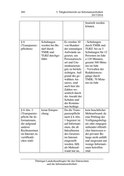 3. Tätigkeitsbericht zur Informationsfreiheit 261 2017/2018 was zur Ein- stellung be- reits im Inter- net veröffent- lichter Infor- mationen in das Transpa- renzportal vor- zunehmen ist. Dies ist neben der Speiche- rung eines Links zu den Informationen die Angabe der zwingend erforderlichen Metadaten. § 6 Abs. 3 Nr. entspricht § 3 Die beste- kein Mehrauf- 2 Buchst. a Abs. 2 Nr. 2 hende Rechts- wand (Transparenz- ThürInfoRegVO lage wird pflicht für Ge- übernommen. setze und Rechtsverord- nungen) § 6 Abs. 3 Nr. entspricht § 3 Die beste- kein Mehrauf- 2 Buchst. b Abs. 2 Nr. 2 hende Rechts- wand (Transparenz- ThürInfoRegVO lage wird pflicht für übernommen. Verwaltungs- vorschriften) § 6 Abs. 3 Nr. keine Entspre- Die Kabinetts- kein beachtlicher 2 Buchst. c chung beschlüsse Mehraufwand; (Transparenz- sind nach §§ unabhängig von pflicht für Ka- 12 bis 14 zu der Anzahl der binettsbe- prüfen, ggf. Kabinettbe- schlüsse) sind Drittbe- schlüsse dürfte re- teiligungen gelmäßig § 12 Abs. 1 Nr. 1 Thüringer Landesbeauftragter für den Datenschutz und die Informationsfreiheit