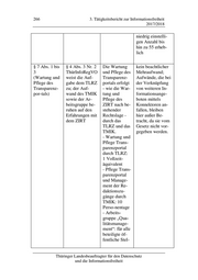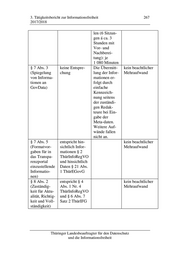 3. Tätigkeitsbericht zur Informationsfreiheit 267 2017/2018 len (6 Sitzun- gen á ca. 3 Stunden mit Vor- und Nachberei- tung): je 1 080 Minuten § 7 Abs. 3 keine Entspre- Die Übermitt- kein beachtlicher (Spiegelung chung lung der Infor- Mehraufwand von Informa- mationen er- tionen an folgt durch GovData) einfache Kennzeich- nung seitens der zuständi- gen Redak- teure bei Ein- gabe der Meta-daten. Weitere Auf- wände fallen nicht an. § 7 Abs. 5 entspricht hin- kein beachtlicher (Formatvor- sichtlich Infor- Mehraufwand gaben für in mationen § 2 das Transpa- ThürInfoRegVO renzportal und hinsichtlich einzustellende Daten § 21 Abs. Informatio- 1 ThürEGovG nen) § 8 Abs. 2 entspricht § 4 kein beachtlicher (Zuständig- Abs. 1 Nr. 4 Mehraufwand keit für Aktu- ThürInfoRegVO alität, Richtig- und § 6 Abs. 7 keit und Voll- Satz 2 ThürIFG ständigkeit) Thüringer Landesbeauftragter für den Datenschutz und die Informationsfreiheit