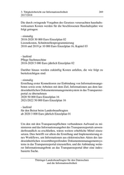 266 3. Tätigkeitsbericht zur Informationsfreiheit 2017/2018 niedrig einstelli- gen Anzahl bis hin zu 55 erheb- lich § 7 Abs. 1 bis § 4 Abs. 3 Nr. 2 Die Wartung kein beachtlicher 3 ThürInfoRegVO und Pflege des Mehraufwand; (Wartung und weist die Auf- Transparenz- Aufwände, die bei Pflege des gabe dem TLRZ portals erfolgt der Verknüpfung Transparenz- zu; der Auf- - wie die War- von weiteren In- por-tals) wand des TMIK tung und formationsange- sowie der Ar- Pflege des boten mittels beitsgruppe be- ZIRT nach be- Konnektoren an- ruhen auf den stehender fallen, bleiben Erfahrungen mit Rechtslage - hier außer Be- dem ZIRT durch das tracht, da sie vom TLRZ und das Gesetz nicht vor- TMIK. gegeben werden. - Wartung und Pflege Trans- parenzportal durch TLRZ: 1 Vollzeit- äquivalent - Pflege Trans- parenzportal und Manage- ment der Re- daktionszu- gänge durch TMIK: 10 Perso-nentage - Arbeits- gruppe „Qua- litätsmanage- ment“: für alle beteiligte öf- fentliche Stel- Thüringer Landesbeauftragter für den Datenschutz und die Informationsfreiheit