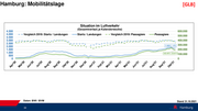 Hamburg: Mobilitätslage [GLB] Situation im Luftverkehr (Gesamtverlauf, je Kalenderwoche) 4.500 600.000 4.000 Vergleich 2019: Starts / Landungen Starts / Landungen Vergleich 2019: Passagiere Passagiere 500.000 3.500 3.000 400.000 2.500 1.669 (- 47) 300.000 2.000 1.500 200.000 1.000 183.497 (- 22.677) 100.000 500 0 0 Daten: BWI / BVM Stand 31.10.2021 34