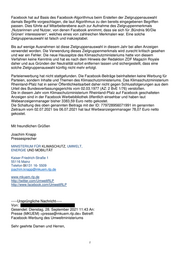Facebook hat auf Basis des Facebook-Algorithmus beim Erstellen der Zielgruppenauswahl damals Begriffe vorgeschlagen, die laut Algorithmus zu den bereits eingegebenen Begriffen passen. Dies führte auf Mitarbeiterebene auch zur Aufnahme des Zielgruppenmerkmals „Nutzerinnen und Nutzer, von denen Facebook annimmt, dass sie sich für ‚Bündnis 90/Die Grünen‘ interessieren“, welches eines von zahlreichen Merkmalen war. Eine solche Zielgruppenauswahl ist falsch und inakzeptabel. Bis auf wenige Ausnahmen ist diese Zielgruppenauswahl in diesem Jahr bei allen Anzeigen verwendet worden. Die Verwendung dieses Zielgruppenmerkmals wird zurecht kritisch gesehen und war ein Fehler. Die neue Hausspitze des Klimaschutzministeriums hatte von diesem Verfahren keine Kenntnis und hat es nach dem Hinweis der Redaktion ZDF Magazin Royale daher und aus Gründen der Neutralität sofort entfernen lassen und sichergestellt, dass eine solche Zielgruppenauswahl künftig nicht mehr erfolgt. Parteienwerbung hat nicht stattgefunden. Die Facebook-Beiträge beinhalteten keine Werbung für Parteien, sondern Inhalte und Themen des Klimaschutzministeriums. Das Klimaschutzministerium Rheinland-Pfalz hat in seiner Öffentlichkeitsarbeit daher nicht gegen Schlussfolgerungen aus dem Urteil des Bundesverfassungsgerichts vom 02.03.1977 (AZ: 2 BvE 1/76) verstoßen. Die in diesem Jahr vom Klimaschutzministerium Rheinland-Pfalz auf Facebook geschalteten Anzeigen sind in der Facebook Werbebibliothek öffentlich einsehbar und haben laut Webeanzeigenmanager bisher 3383,59 Euro netto gekostet. Die Schaltung des oben genannten Beitrags mit der ID: 779728956071991 im genannten Zeitraum vom 02.07.2021 bis 06.07.2021 hat laut Werbeanzeigenmanager 78,07 Euro netto gekostet. Mit freundlichen Grüßen Joachim Knapp Pressesprecher MINISTERIUM FÜR KLIMASCHUTZ, UMWELT, ENERGIE UND MOBILITÄT Kaiser-Friedrich-Straße 1 55116 Mainz Telefon 06131 16- 5509 joachim.knapp@mkuem.rlp.de www.mkuem.rlp.de http://twitter.com/UmweltRLP http://www.facebook.com/UmweltRLP -----Ursprüngliche Nachricht----- Von: Gesendet: Dienstag, 28. September 2021 11:43 An: Presse (MKUEM) <presse@mkuem.rlp.de> Betreff: Facebook-Werbung des Umweltministeriums Sehr geehrte Damen und Herren, 2