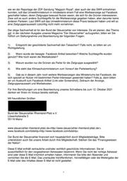 wie wir der Reportage der ZDF-Sendung "Magazin Royal", aber auch der des SWR entnehmen konnten, soll das Umweltministerium in mindestens einem Fall eine Werbeanzeige auf Facebook geschaltet haben, deren Zielgruppe bewusst Nutzer waren, die sich für die Grünen interessieren. Zwar soll es auch andere Suchbegriffe für die Werbeanzeige gegeben haben, aber darunter keine anderen Parteien. Laut SWR soll das Umweltministerium diese Praxis bedauert haben und will so eine Zielgruppenauswahl zukünftig nicht mehr vornehmen. Der obige Sachverhalt ist für den Bund der Steuerzahler von Interesse. Da wir planen, das Thema ggf. in der nächsten Ausgabe unseres Magazins "Der Steuerzahler" aufzugreifen, bitten wir Sie höflich um Stellungnahme und Beantwortung der folgenden Fragen: 1) Entspricht der geschilderte Sachverhalt den Tatsachen? Falls nicht, so bitten wir um Richtigstellung. 2) Wann wurde der besagte Facebook-Artikel beworben? Welche Suchbegriffe wurden genutzt? Wie hoch waren die Werbekosten? 3) Warum wurden nur die Grünen als Partei für die Zielgruppe ausgewählt? 4) Wie steht das Klimaschutzministerium zum Vorwurf der Parteiwerbung? 5) Gab es in diesem Jahr noch weitere Werbeanzeigen des Ministeriums bei Facebook, die sich speziell an Nutzer mit bestimmten Partei-Interessen gewendet haben? Falls ja, dann bitten wir um Auskunft zum Facebook-Artikel (Link oder Screenshot), Zeitraum der Anzeige, Zielgruppenauswahl und Werbekosten. Für Ihre Bemühungen um eine Beantwortung unseres Schreibens bis zum 12. Oktober 2021 danken wir Ihnen im Voraus bereits vielmals. Mit freundlichen Grüßen ____________________ Bund der Steuerzahler Rheinland-Pfalz e.V. Löwenhofstraße 5 55116 Mainz www.steuerzahler-rheinland-pfalz.de<http://www.steuerzahler-rheinland-pfalz.de/> www.facebook.com/bdstrlp<http://www.facebook.com/bdstrlp> Der Bund der Steuerzahler finanziert sich hauptsächlich durch Mitgliedsbeiträge. Bitte unterstützen auch Sie unsere Arbeit durch Ihre Mitgliedschaft. Stärken Sie das "Finanzgewissen der Nation". Diese E-Mail enthält vertrauliche und/oder rechtlich geschützte Informationen. Sie ist ausschließlich für den vorgesehenen Adressaten bestimmt. Wenn Sie nicht der richtige Adressat sind oder diese E-Mail irrtümlich erhalten haben, informieren Sie bitte den Absender und vernichten Sie die E-Mail. Das unerlaubte Veröffentlichen, Vervielfältigen oder die Weitergabe der E-Mail oder des Inhaltes dieser E-Mail ist nicht gestattet. 3