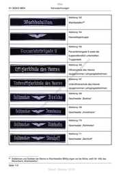 Offen A1-2630/0-9804 Kennzeichnungen Abbildung 163 86 Wachbataillon Abbildung 164 Heeresfliegertruppe Abbildung 165 Panzerlehrbrigade 9 sowie die truppendienstlich unterstellten Truppenteile st en sd Abbildung 166 i ng Offizierschule des Heeres ru de (ausgenommen Lehrgangsteilnehmer) Än m Abbildung 167 de ht Unteroffizierschule des Heeres ic tn (ausgenommen Lehrgangsteilnehmer) eg rli Abbildung 168 te un k Geschwader „Boelcke“ uc dr us rA Abbildung 169 se Geschwader „Immelmann“ ie D Abbildung 170 Geschwader „Richthofen“ Abbildung 171 Geschwader „Steinhoff“ 86 Soldatinnen und Soldaten der Marine im Wachbataillon BMVg tragen auf der Mütze, weiß (Nr. 406) das Mützenband „Wachbataillon“. Seite 112 Stand: Oktober 2018