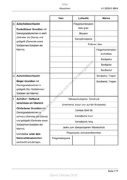 Offen Abzeichen A1-2630/0-9804 Heer Luftwaffe Marine d) Aufschiebeschlaufen Fliegerkombination blau-grau Dunkelblauer Grundton mit Dienstgradabzeichen in weiß Blouson (Gefreiter bis Oberst) und Ganzjahresjacke goldgelb (Generale sowie Soldatinnen/Soldaten der Pullover, blau Marine). Fliegerkombination dunkelblau Bordparka st en Bordjacke sd i ng Bordhemd ru e) Aufschiebeschlaufen de Bordjacke, Tropen Än Beiger Grundton mit m Bordhemd, Tropen de Dienstgradabzeichen in ht goldgelb (Nur Soldatinnen/ ic tn Soldaten der Marine). eg rli f) Aufnäher / Haftband- te Nässeschutzjacke, Tarndruck un verschluss am Oberarm k uc Unterhemd, braun (nur auf der Brustseite) dr Olivfarbener Grundton mitus Combat-Shirt SK rA Dienstgradabzeichen in se Kampfjacke, kurz schwarz (Gefreiter bis Oberst) ie D und goldgelb (Generale sowie Kampfjacke, lang Soldatinnen/Soldaten der Jacke zum übergezogenen Nässeschutz Marine). Fliegerjacke, schwerentflammbar Unmittelbar unter dem Nationalitätsabzeichen Fliegerlederjacke senkrecht anzubringen. Seite 117 Stand: Oktober 2018