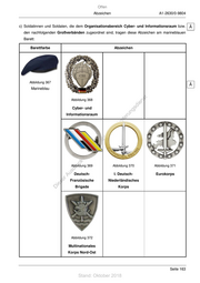 Offen Abzeichen A1-2630/0-9804 c) Soldatinnen und Soldaten, die dem Organisationsbereich Cyber- und Informationsraum bzw. Ä den nachfolgenden Großverbänden zugeordnet sind, tragen diese Abzeichen am marineblauen Barett: Barettfarbe Abzeichen Abbildung 367 Ä Marineblau Abbildung 368 st en sd i Cyber- und ng Informationsraum ru de Än m de ht ic tn eg rli te un k uc Abbildung 369 Abbildung 370 Abbildung 371 dr us rA Deutsch- I. Deutsch- Eurokorps se Französische Niederländisches ie D Brigade Korps Abbildung 372 Multinationales Korps Nord-Ost Seite 163 Stand: Oktober 2018